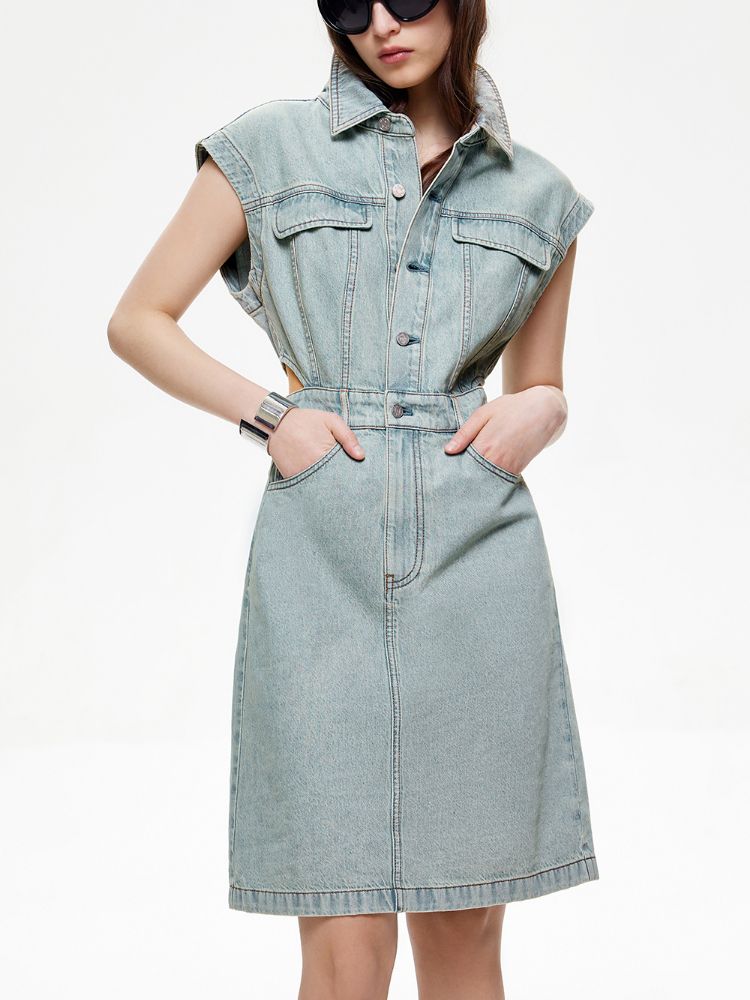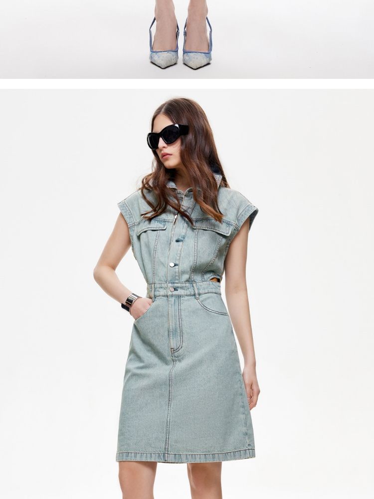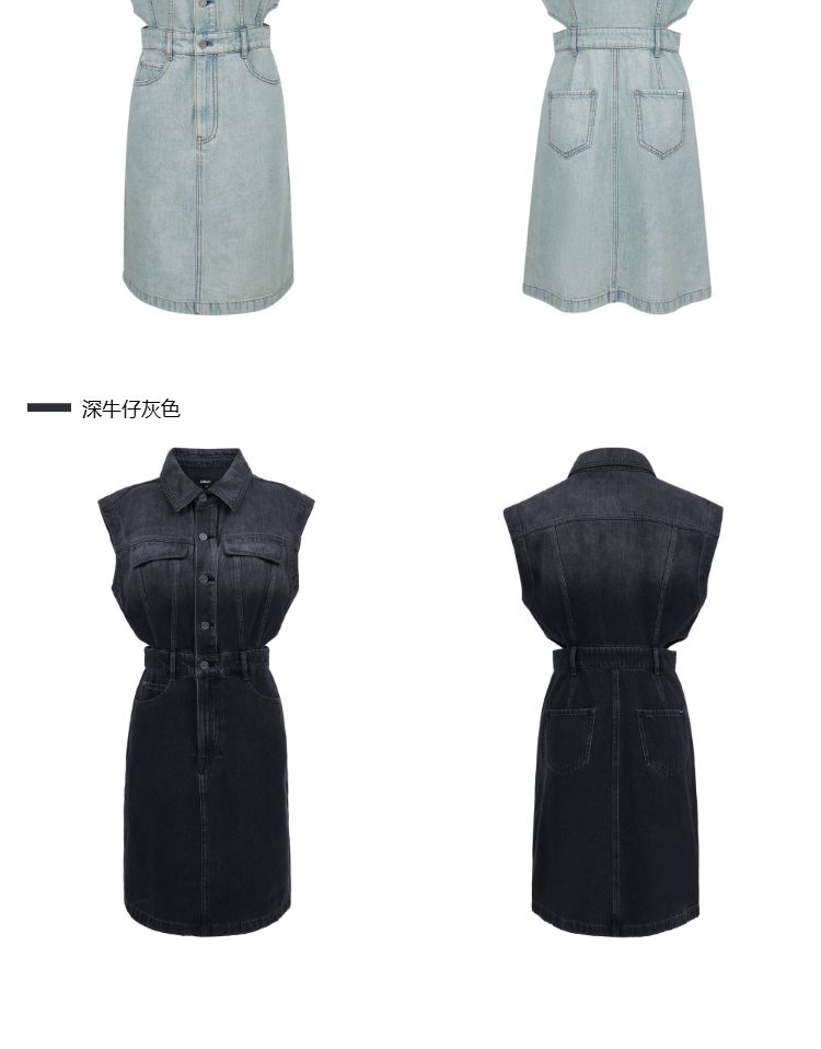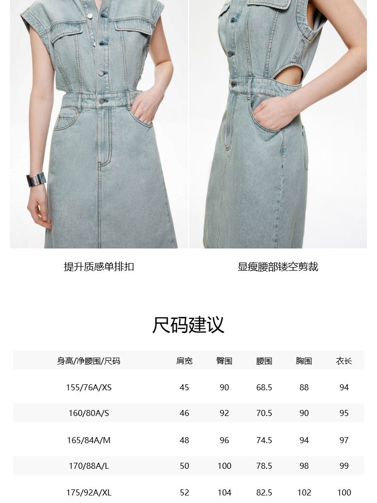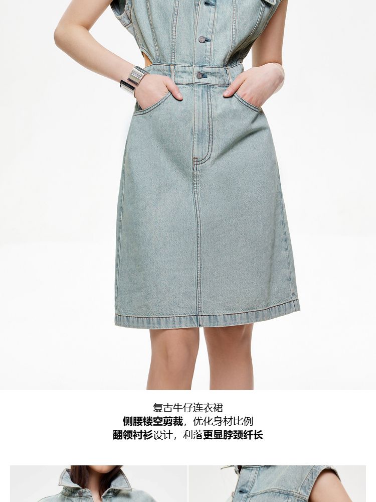 商品名称:【侧腰镂空】2025夏季单排扣口袋收腰翻领短裙牛仔连衣裙女 872922