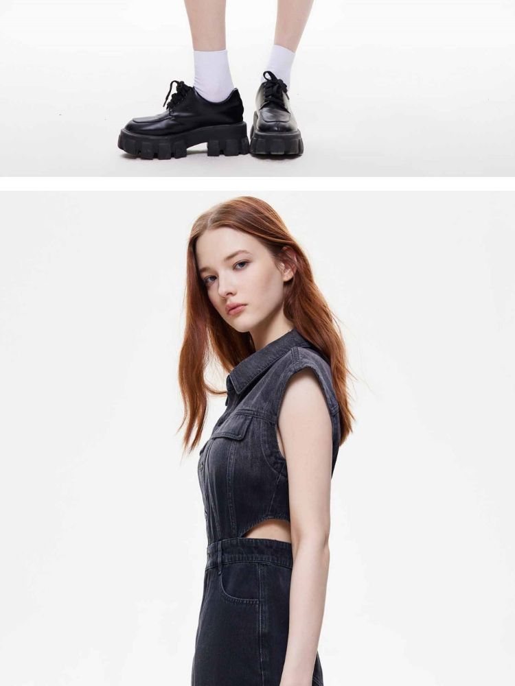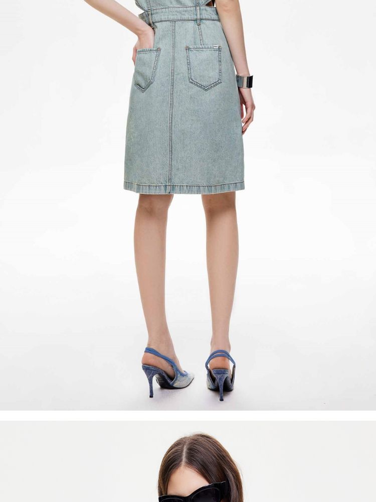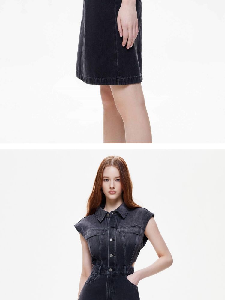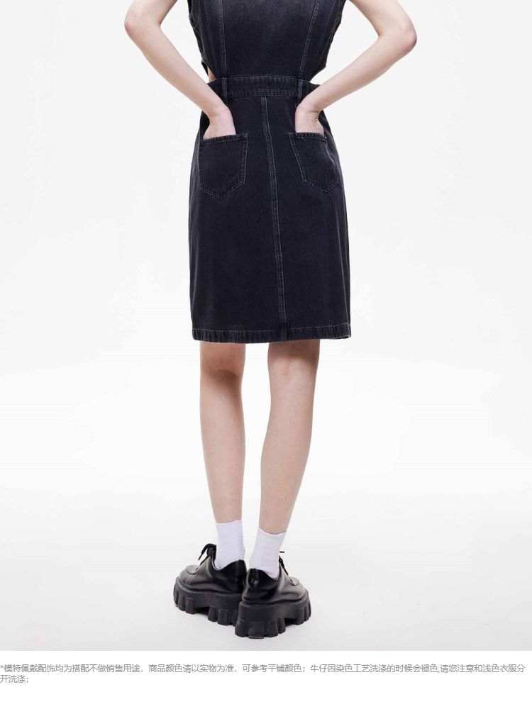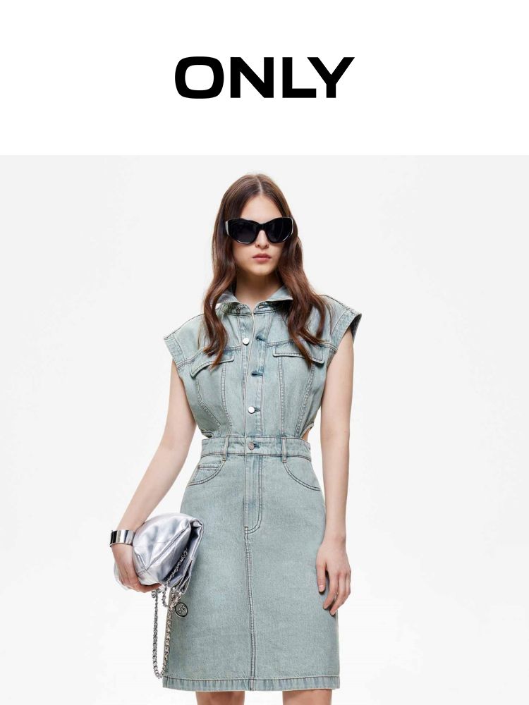 商品名称:【侧腰镂空】2025夏季单排扣口袋收腰翻领短裙牛仔连衣裙女 872922