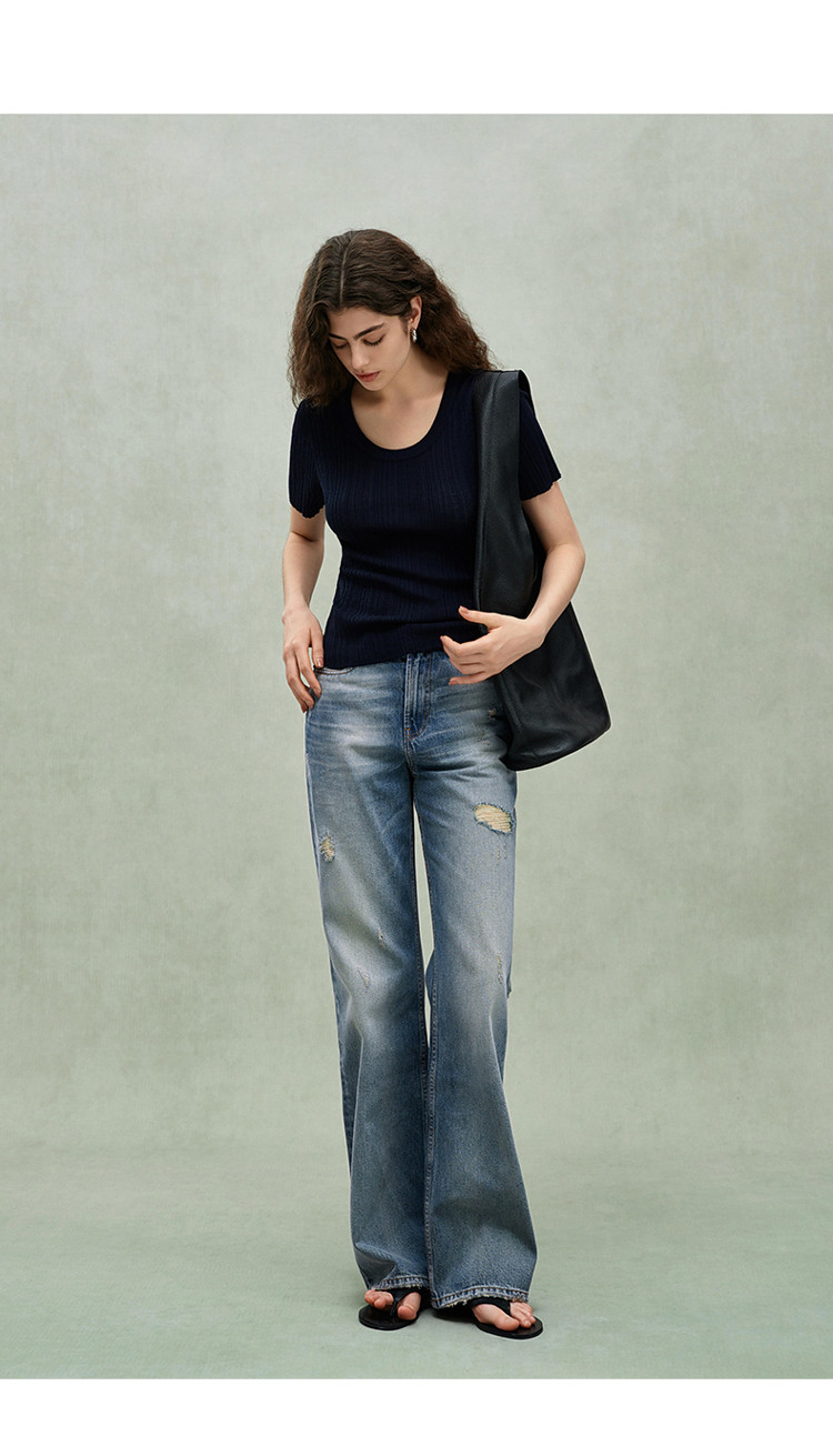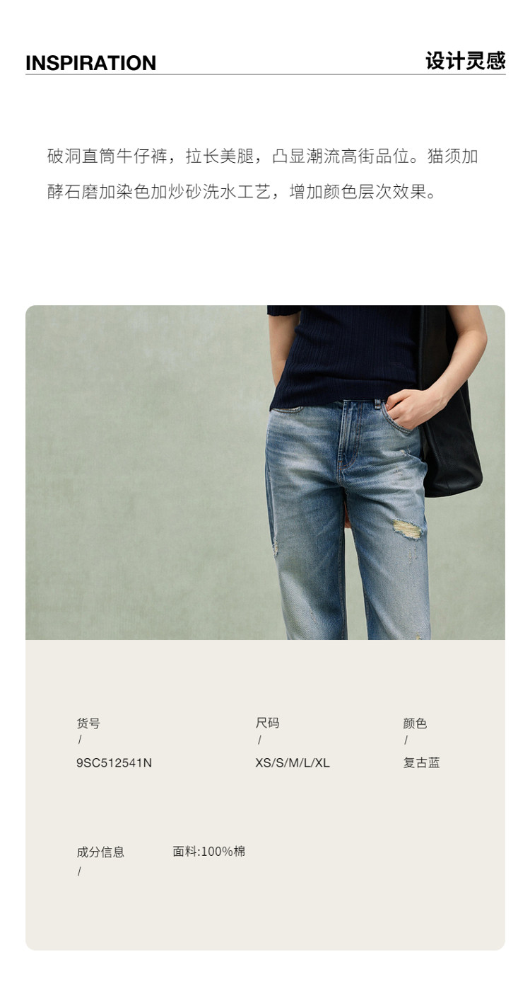 限定系列OCH.春装 复古显瘦蓝色直筒裤进口牛仔长裤女 949135