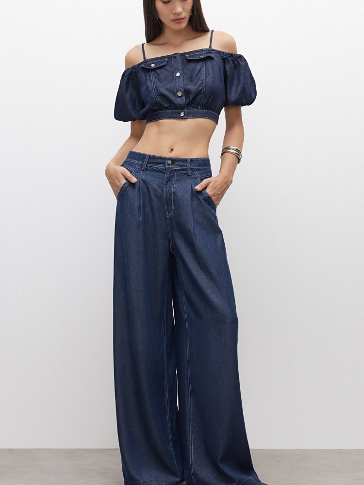 【莱赛尔】25夏季含莱赛尔高腰宽松阔腿裤长裤牛仔裤女 588186