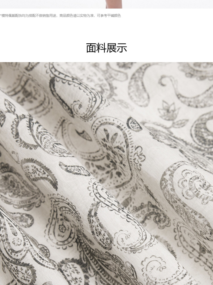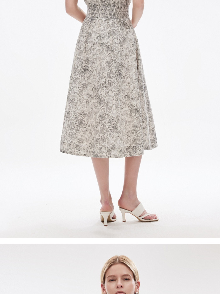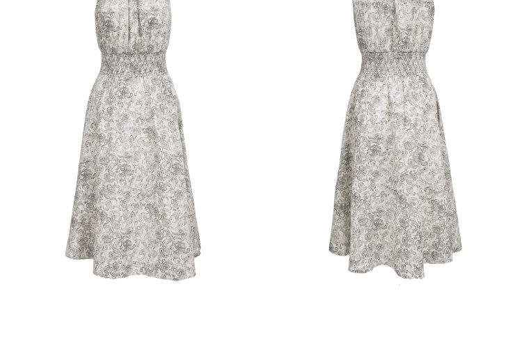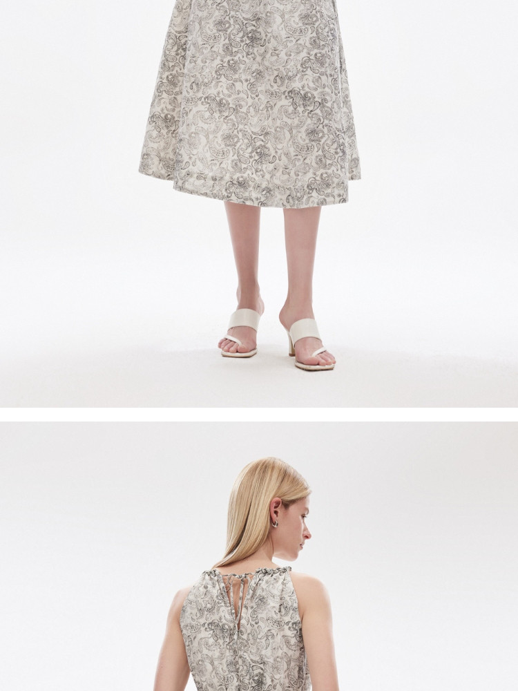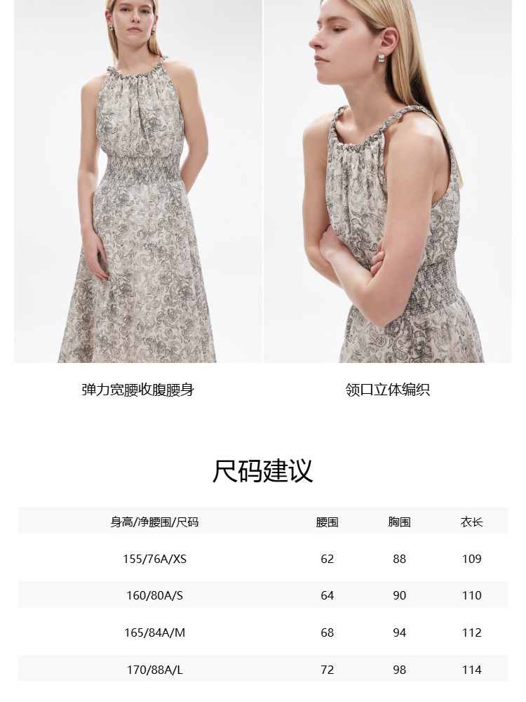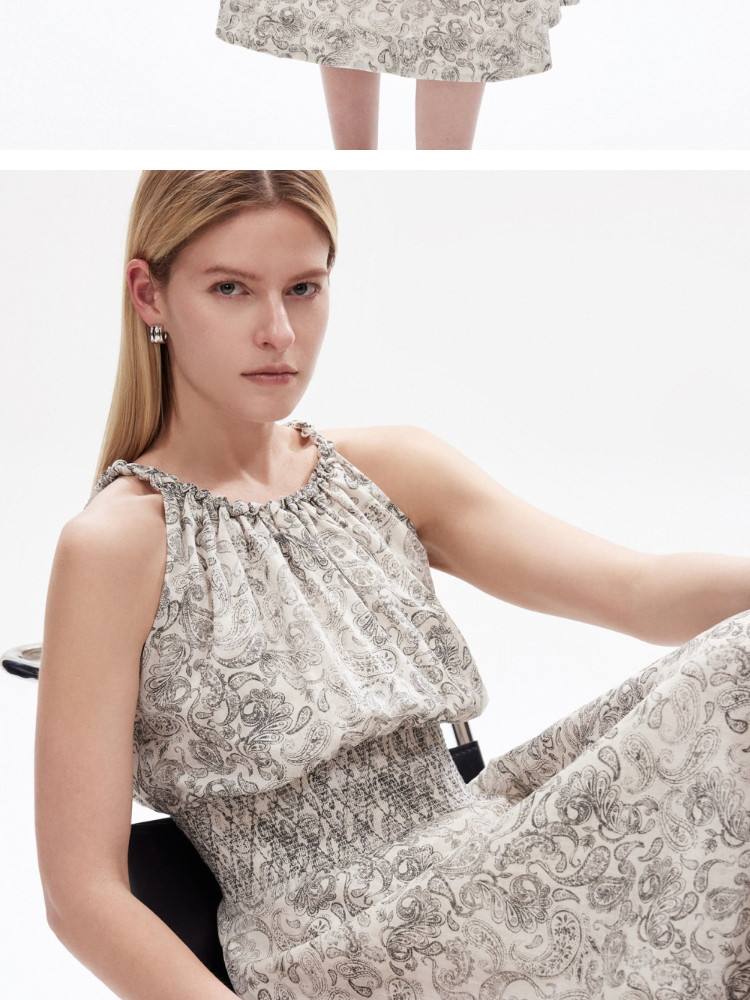 商品名称:【度假风】2025春季印花收腰褶皱显瘦无袖中长裙连衣裙女 724826