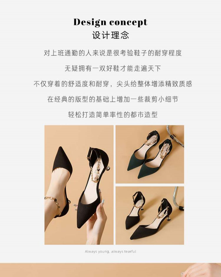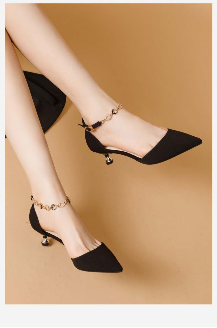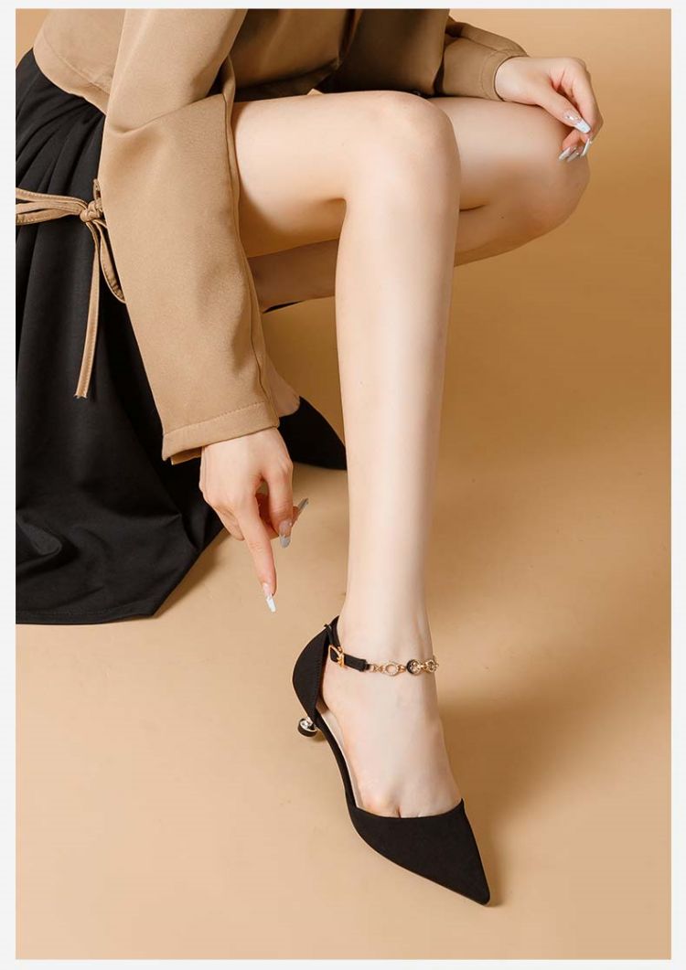 商品名称:【热卖爆款】夏季百搭女士尖头高跟鞋中空凉鞋尖头高级感女单鞋 759959