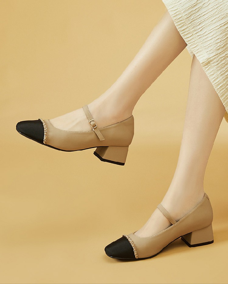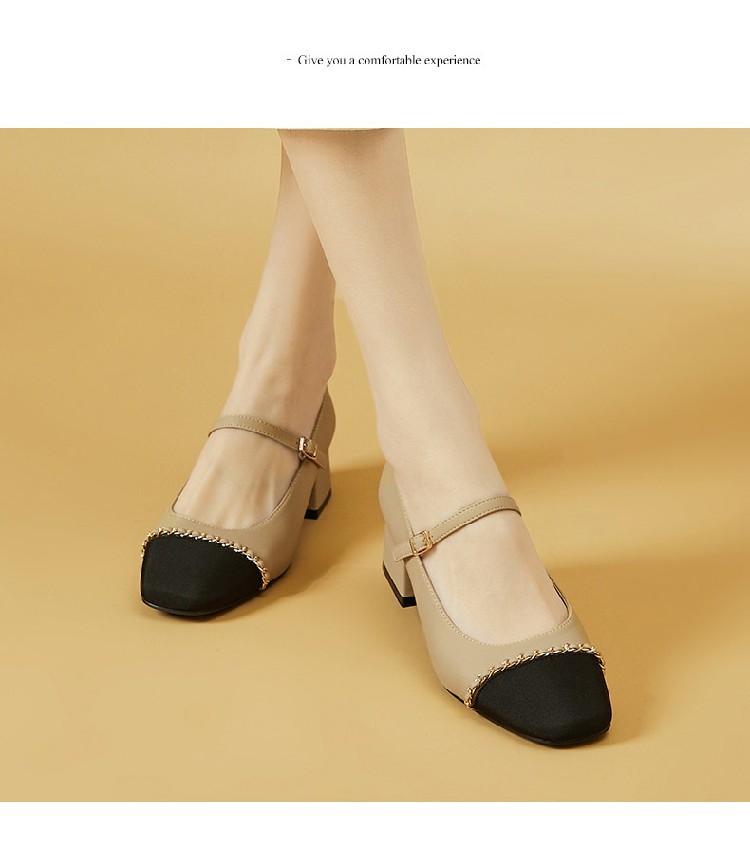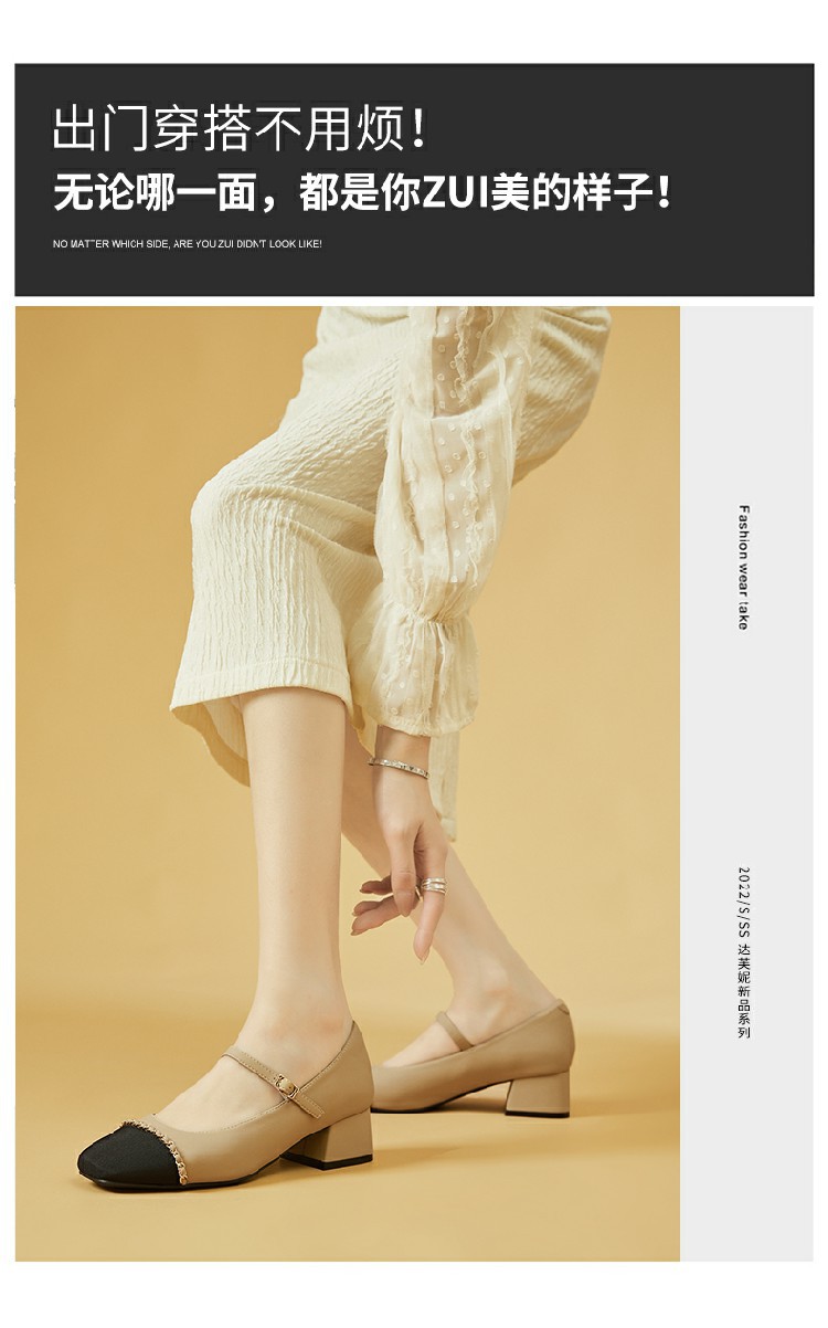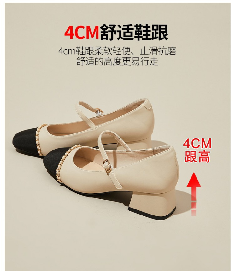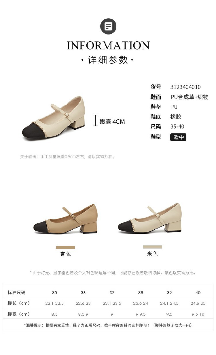 商品名称:【时尚拼色】通勤鞋浅口鞋舒适一脚蹬女鞋中跟单鞋女百搭女鞋 223002