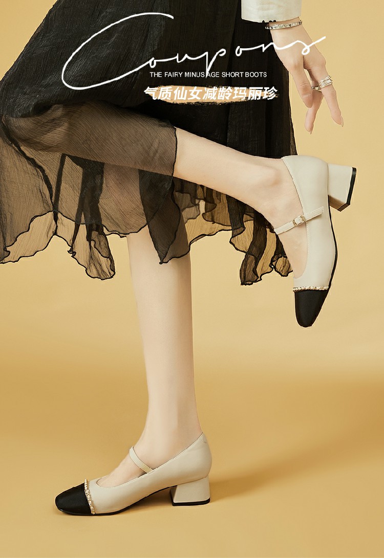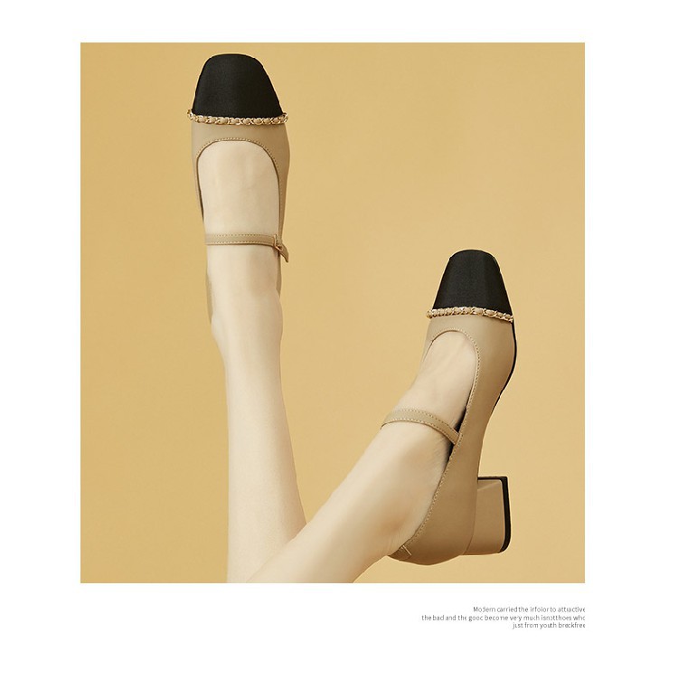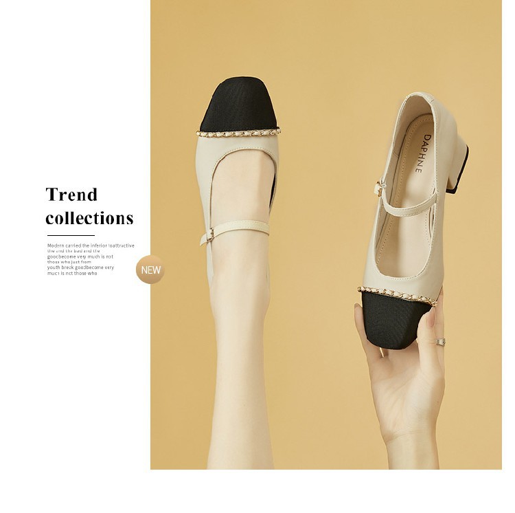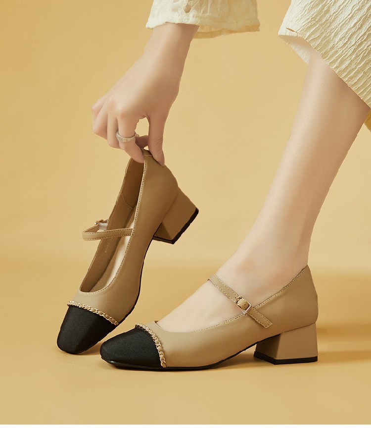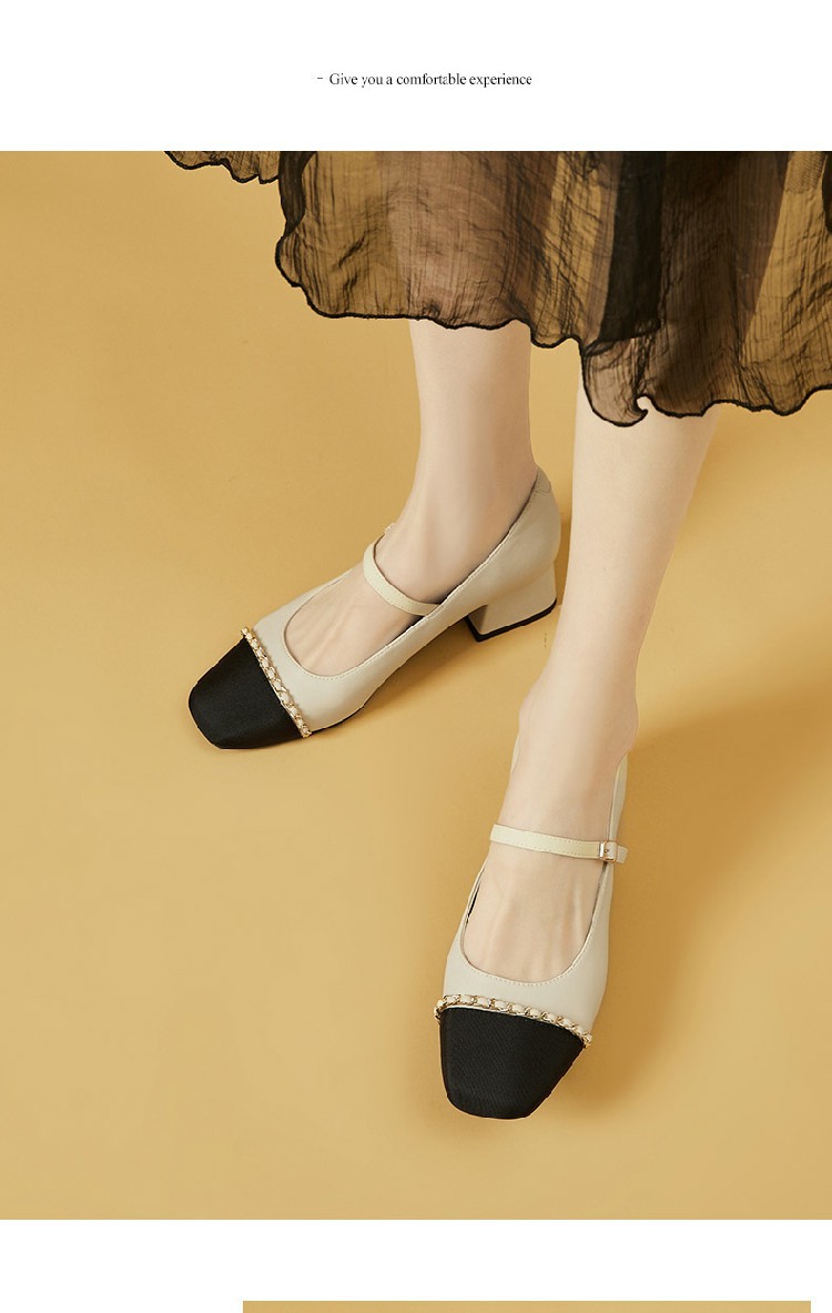 商品名称:【时尚拼色】通勤鞋浅口鞋舒适一脚蹬女鞋中跟单鞋女百搭女鞋 223002