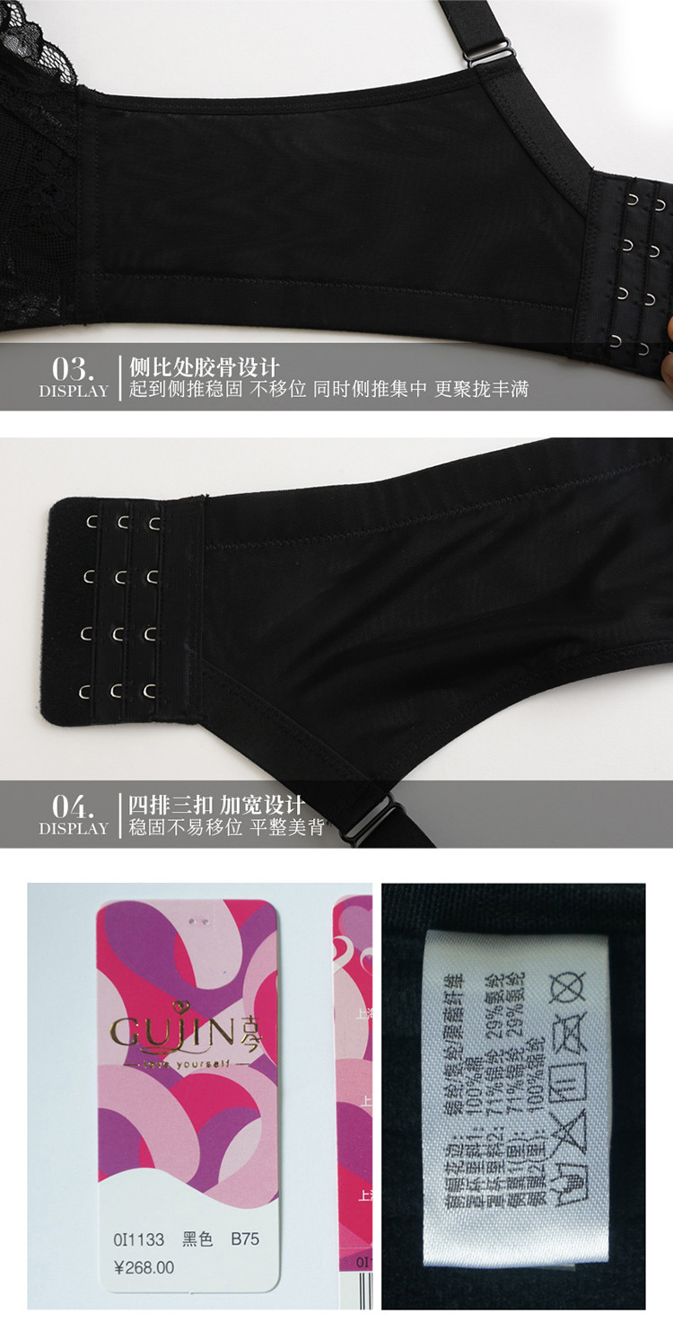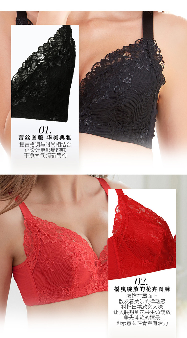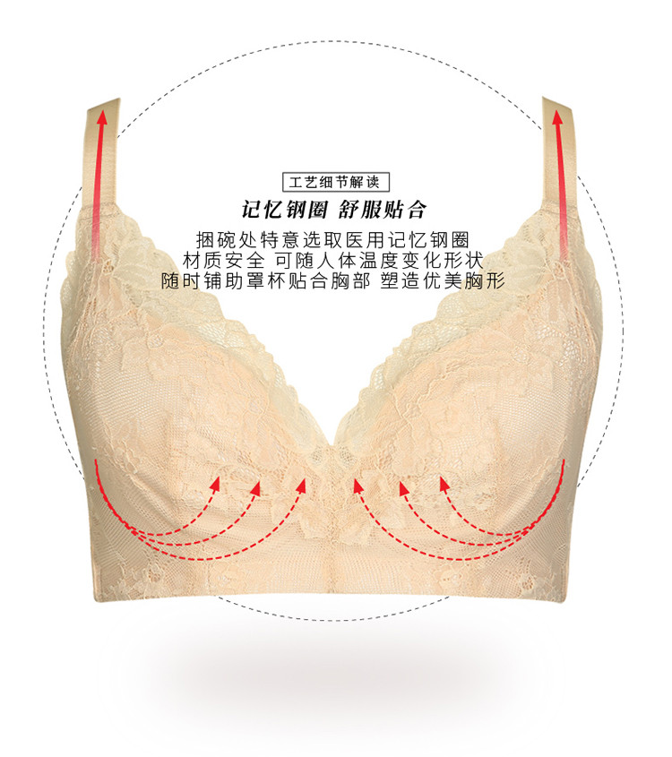 全罩杯V型聚拢侧收上托蕾丝图腾设计薄杯记忆钢圈款大胸款文胸 252427