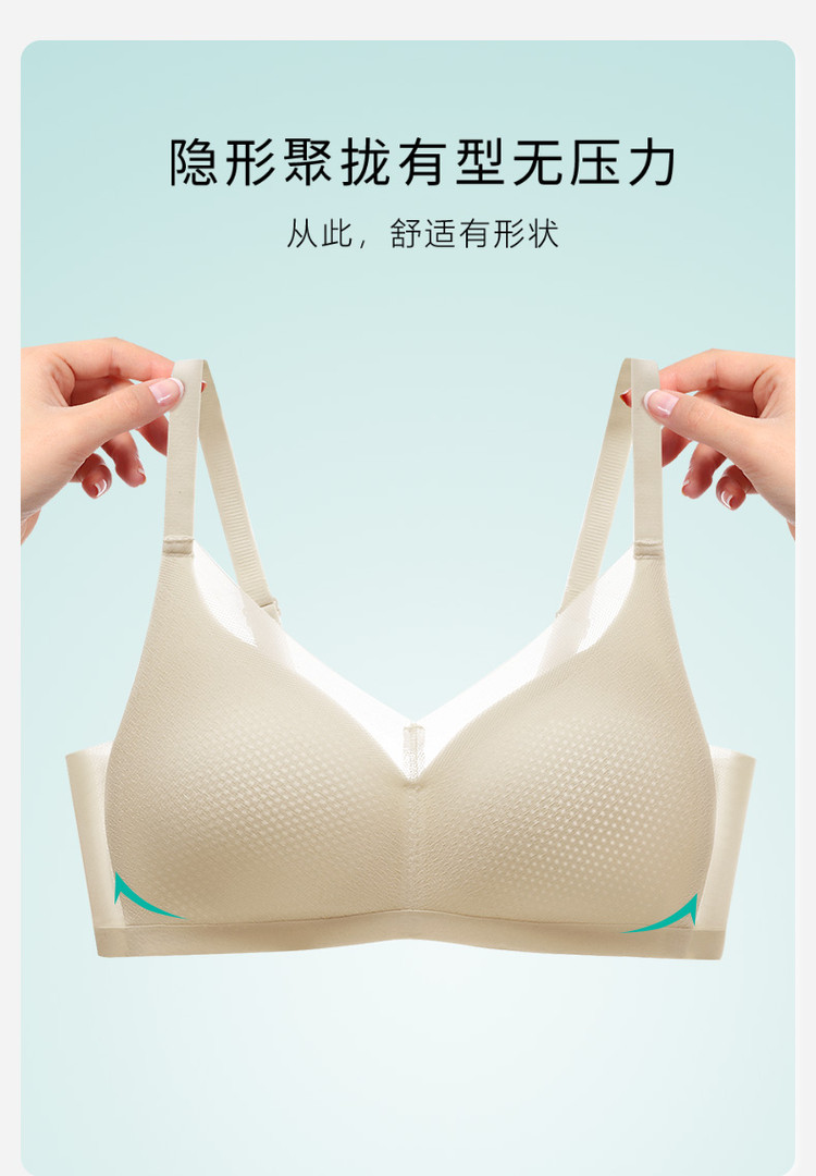 商品名称:【超薄透气V领性感】无钢圈聚拢提拉侧收不空杯内衣文胸罩女新款 740446