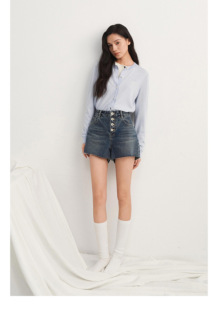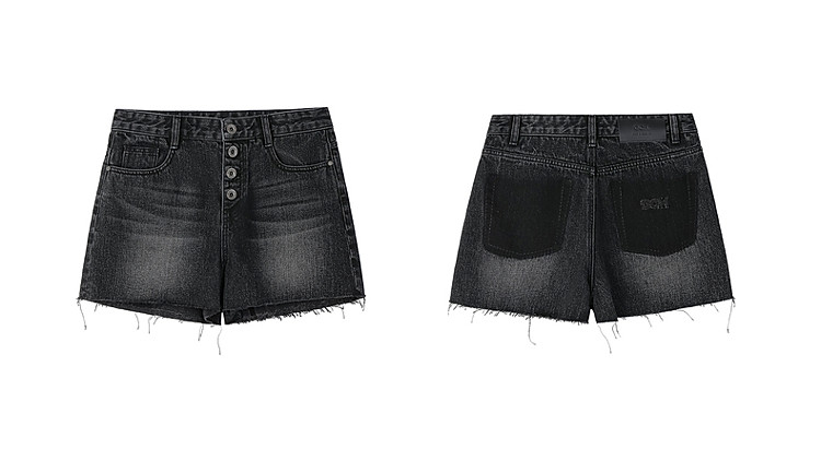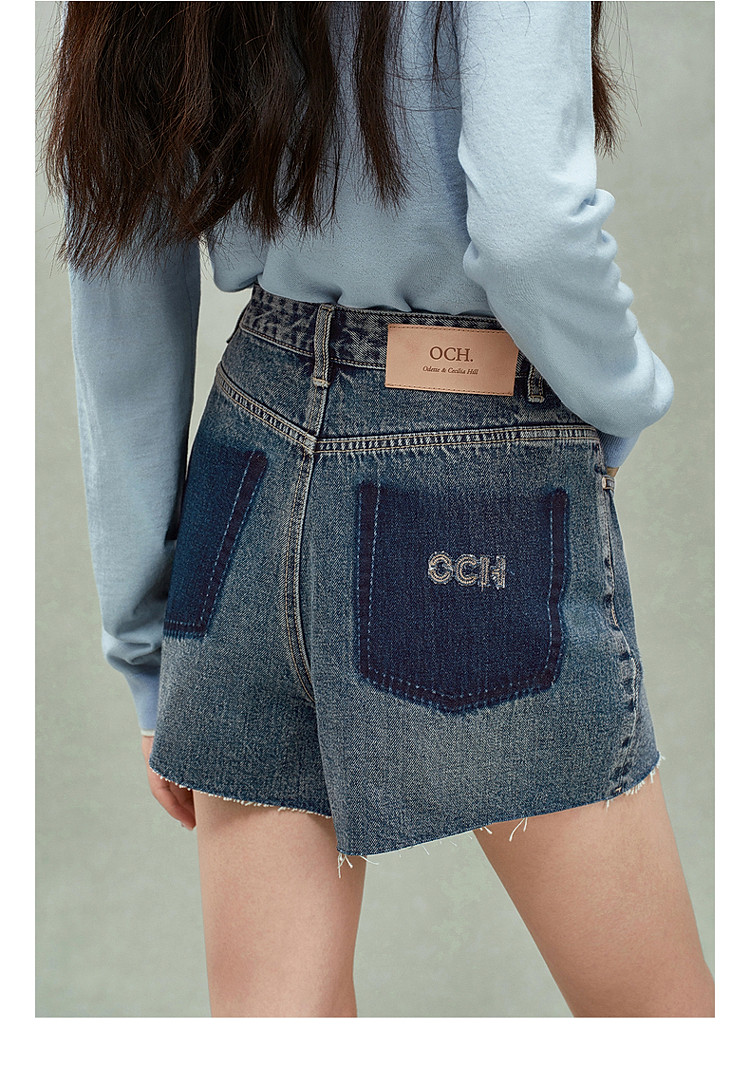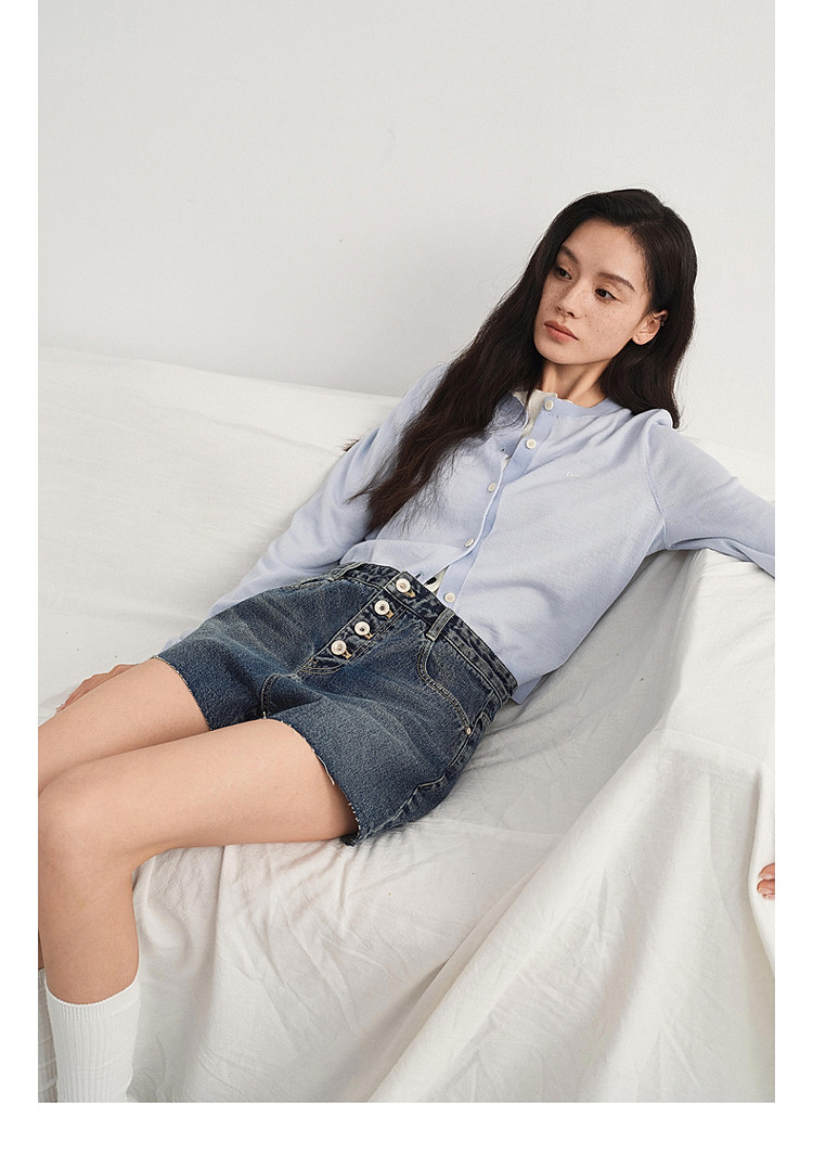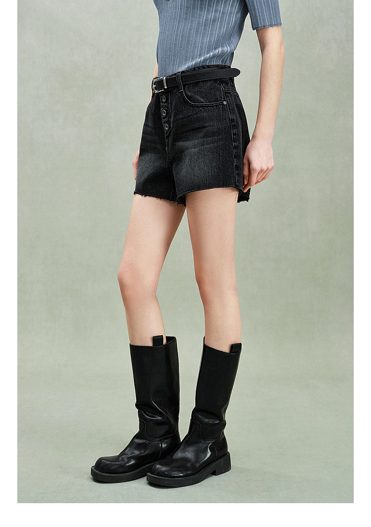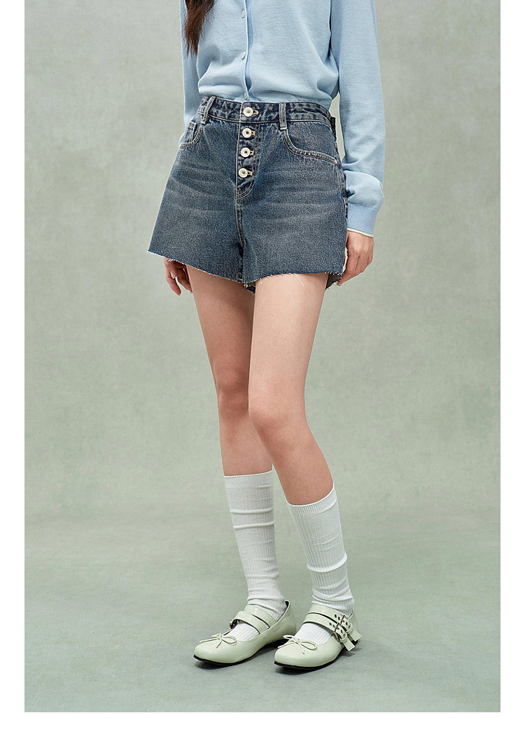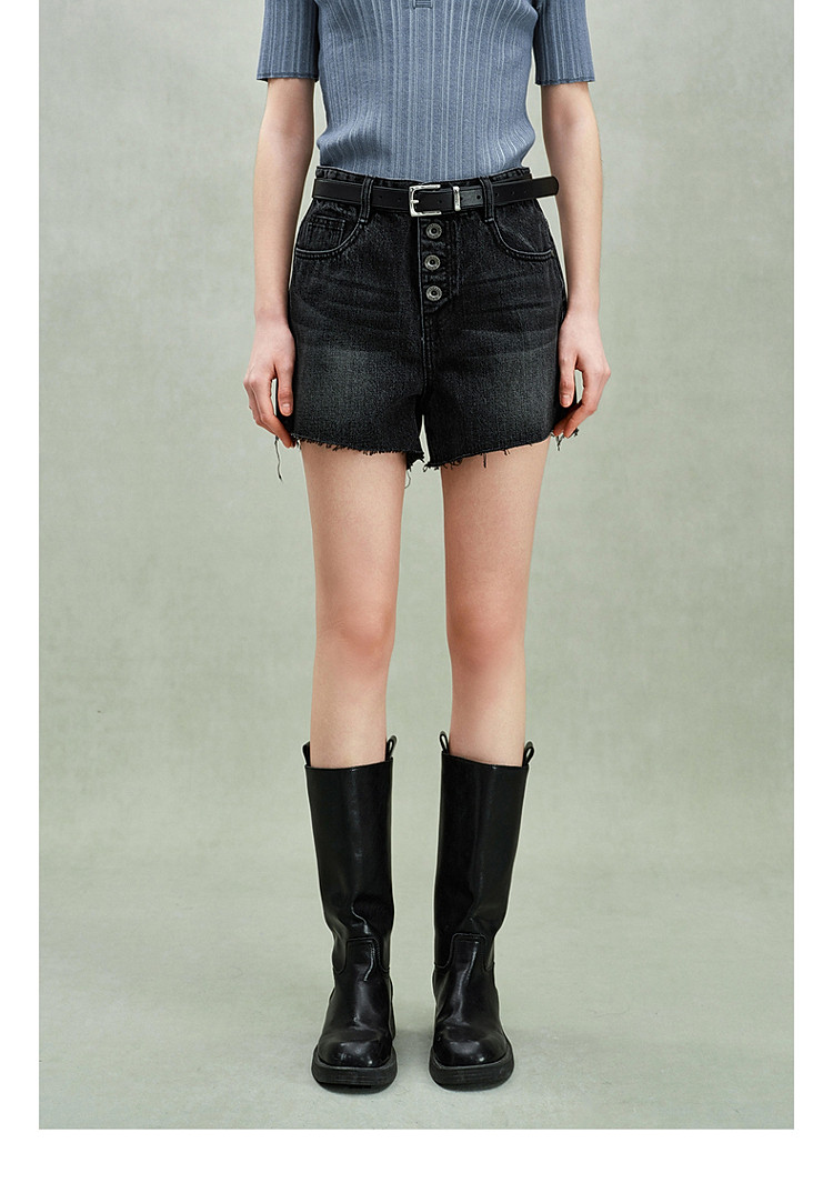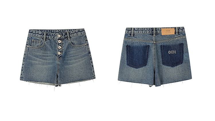 限定系列OCH.春装 进口复古显瘦排扣直筒牛仔短裤女 166223