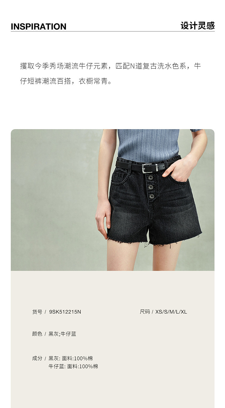商品名称:限定系列OCH.春装 进口复古显瘦排扣直筒牛仔短裤女 166223
