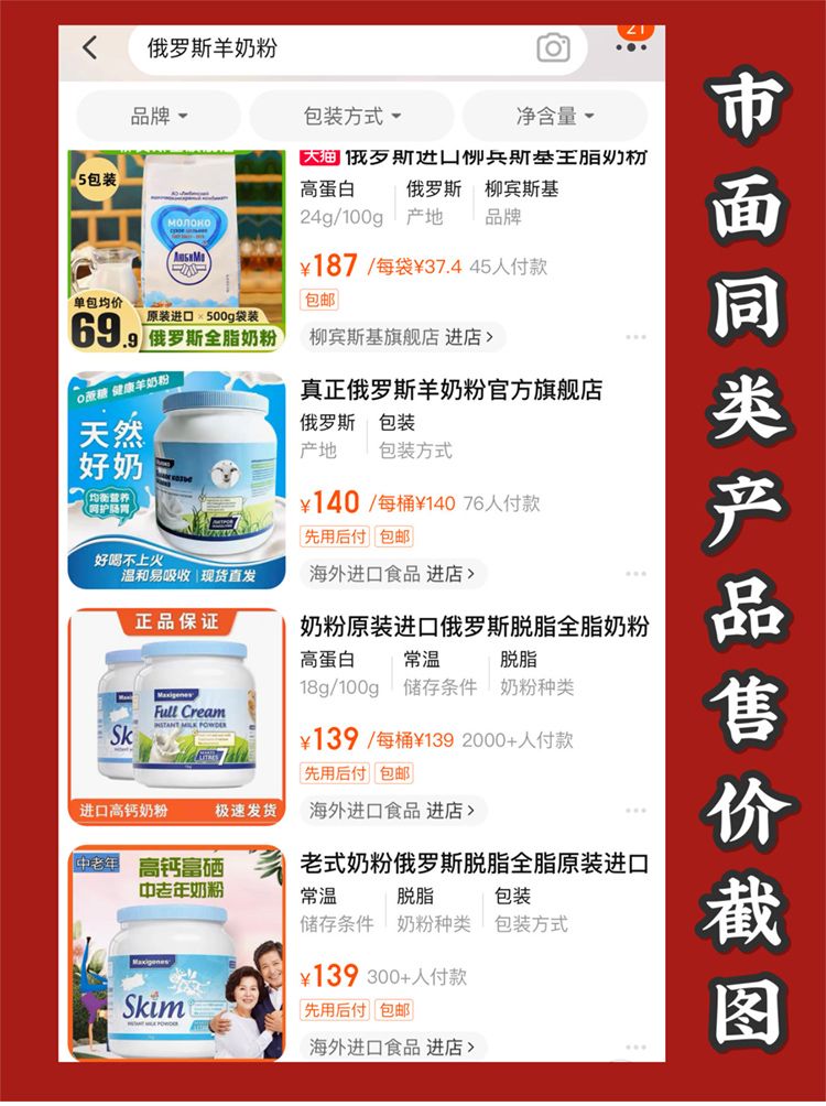 商品名称:俄罗斯高钙牦牛奶粉_500g(罐装)