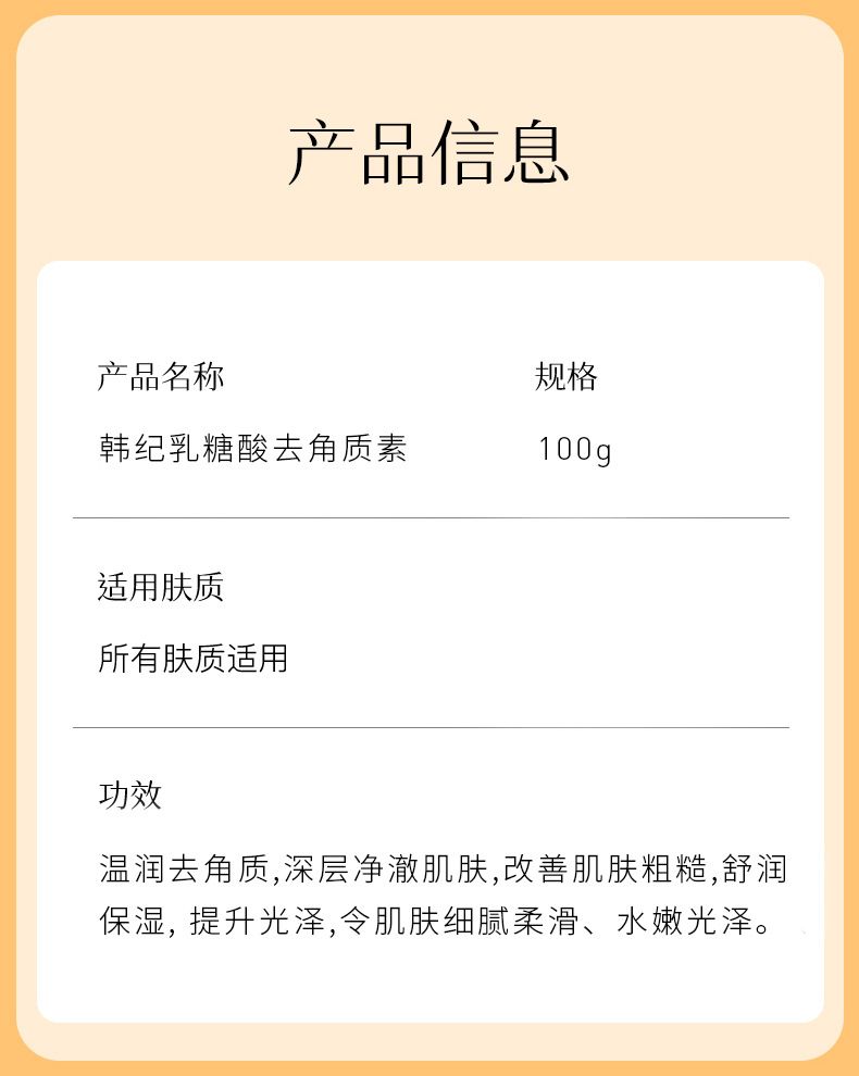 商品名称:Hankey/韩纪乳糖酸去角质素100g