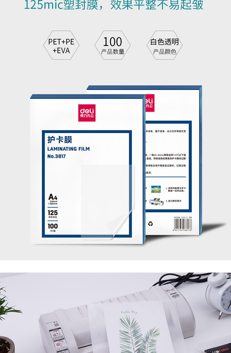 商品名称:得力 3817护卡膜(透明)(100片/包)*1包