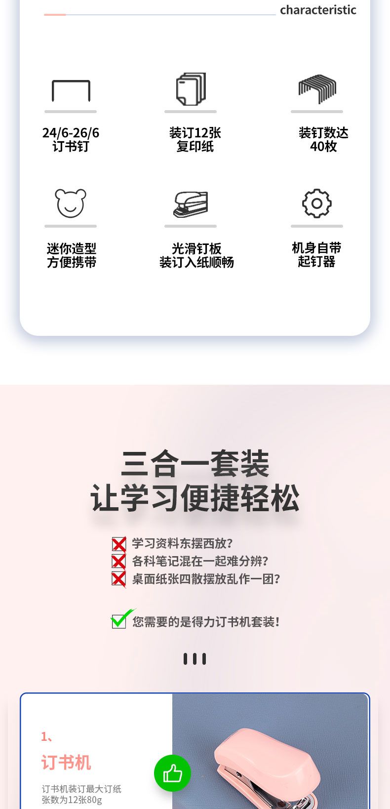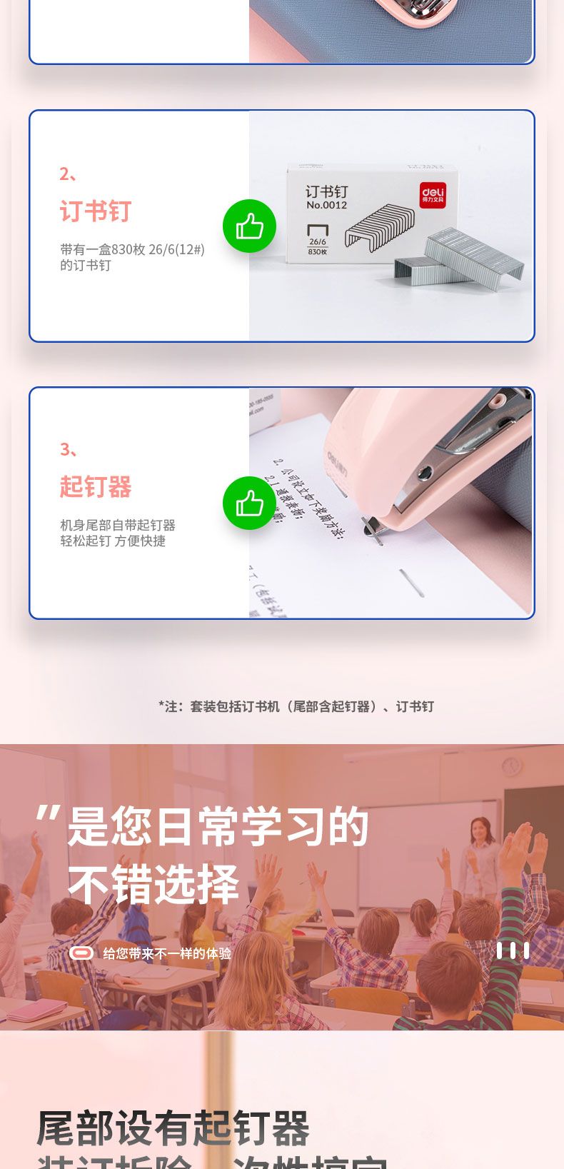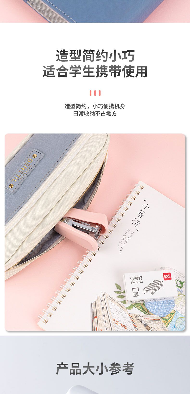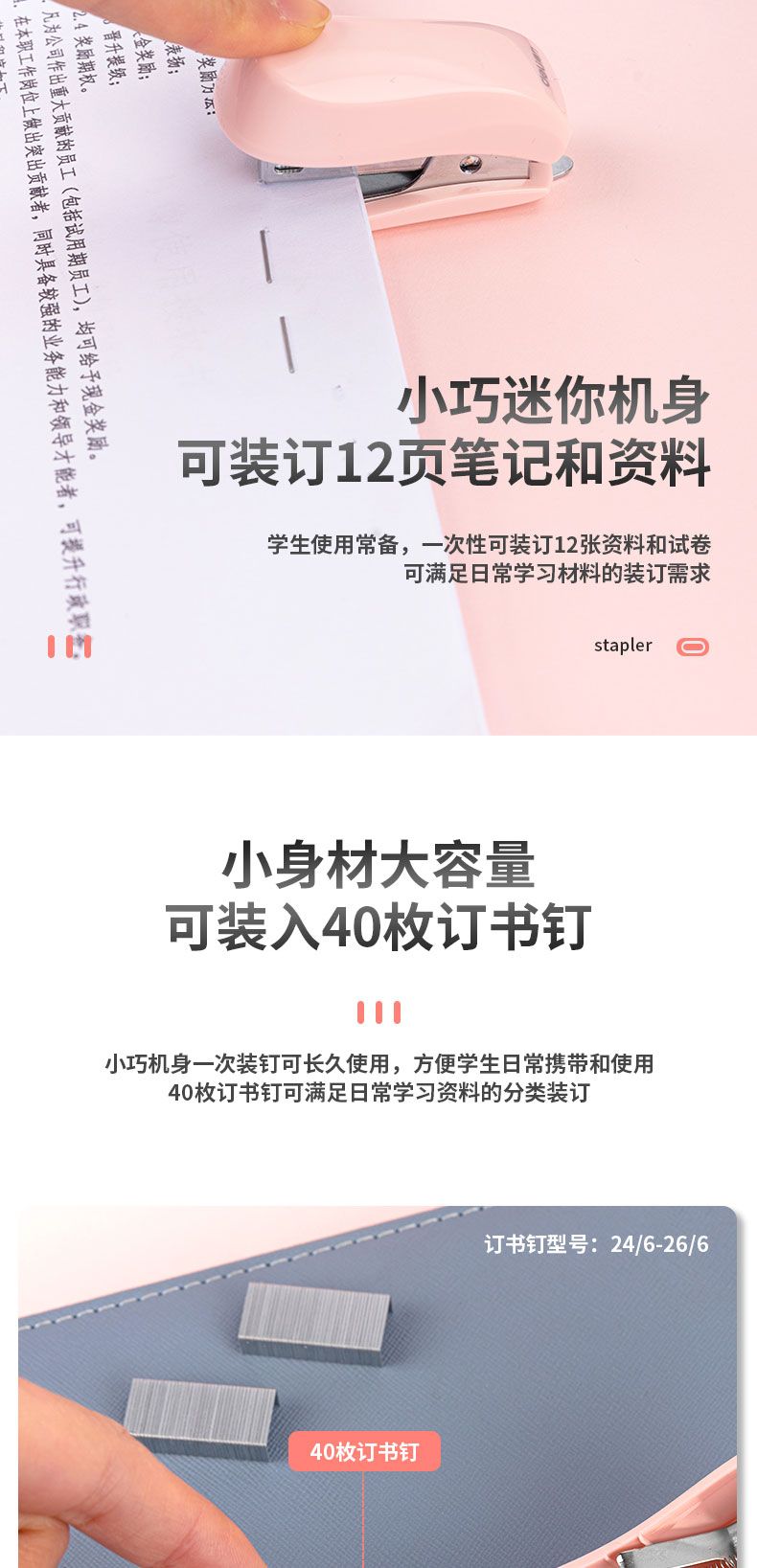 商品名称:得力 0255迷你订书机套装(粉色)(1订书机+1订书钉/卡)*5套