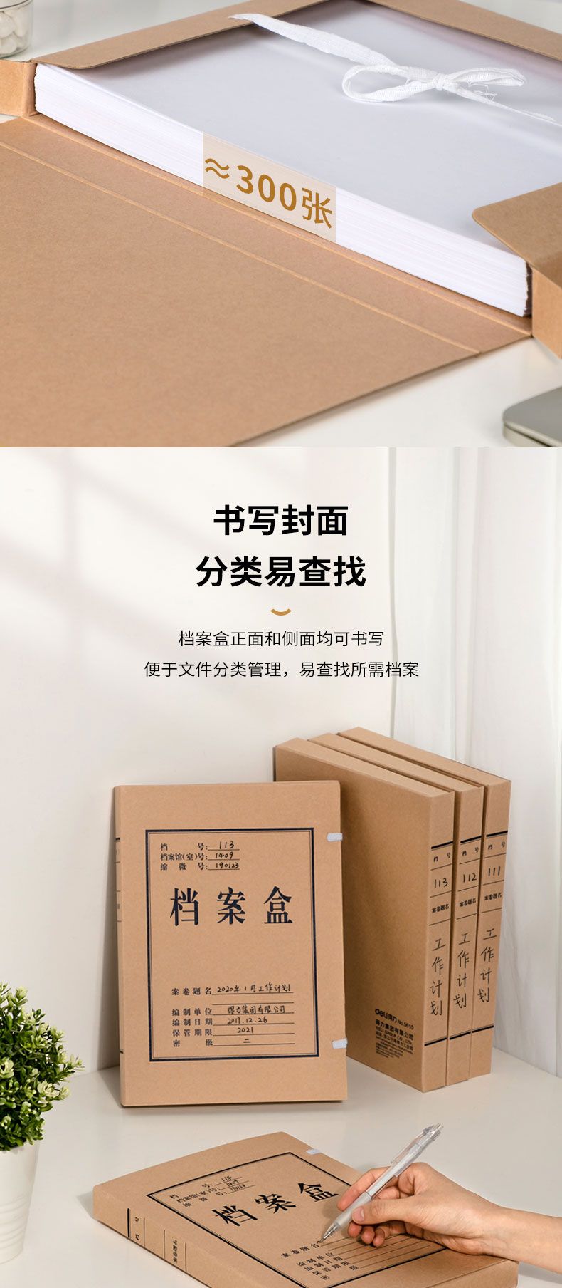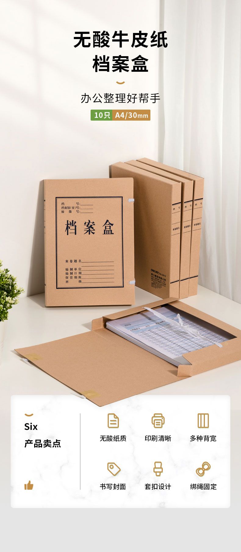 商品名称:得力 5610无酸牛皮纸档案盒(棕黄)(10个/包)*2包