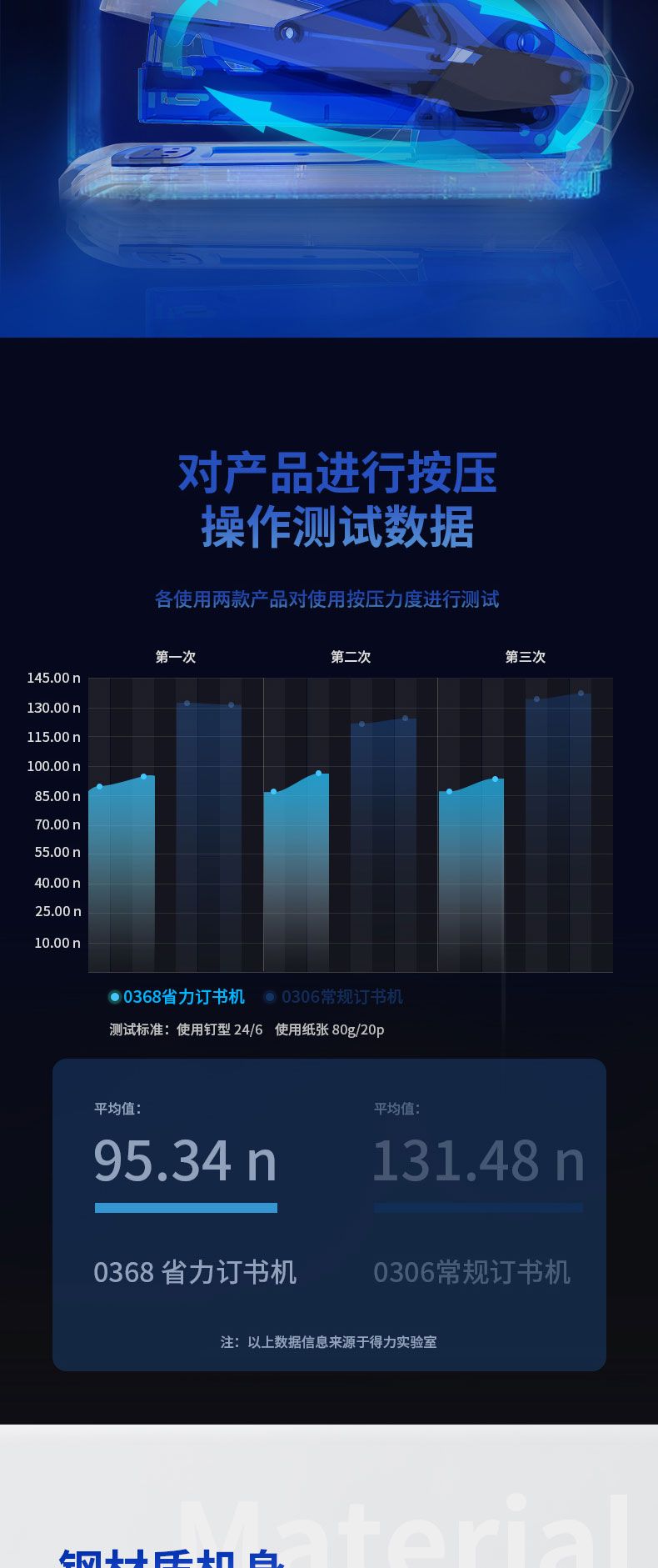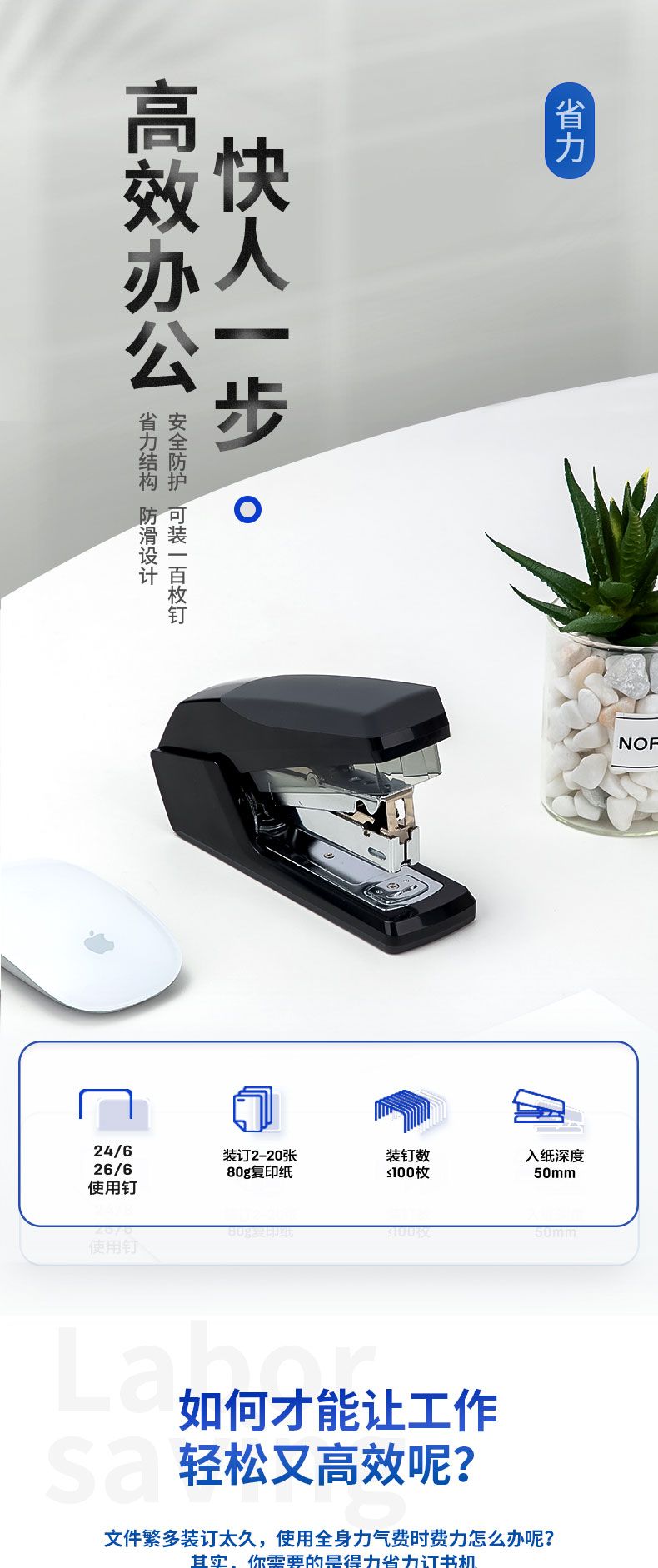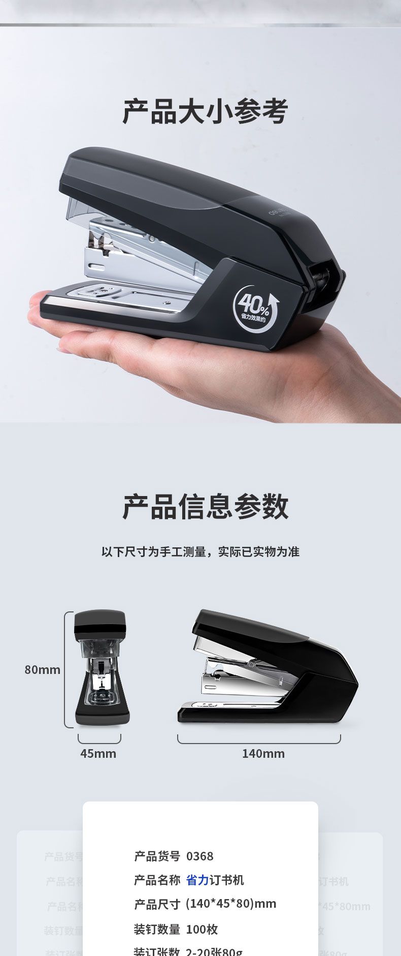 商品名称:得力 0368省力订书机(颜色随机)*1台