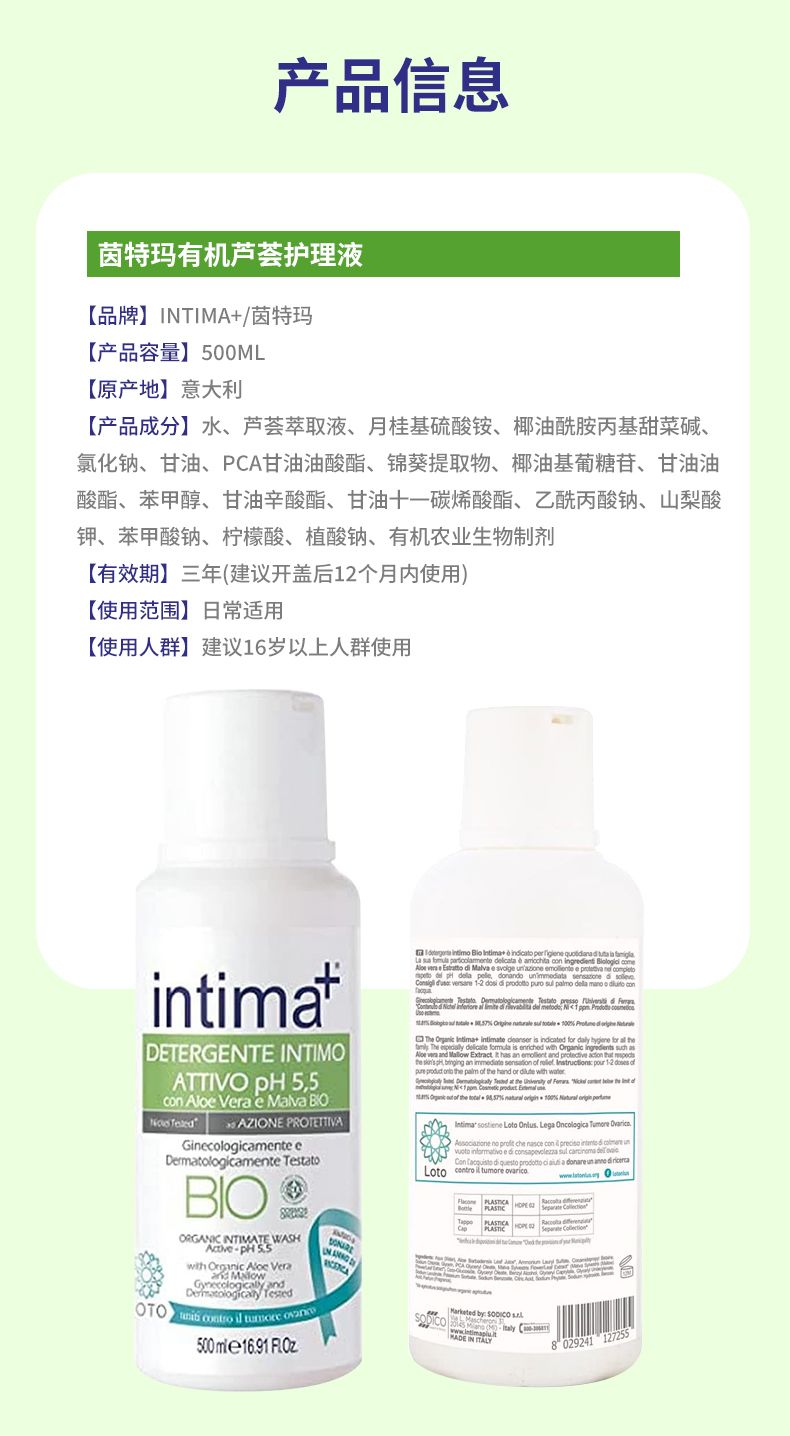 商品名称:Intima+茵特玛护理私部清洗液日常女性护理液绿色瓶芦荟500ml