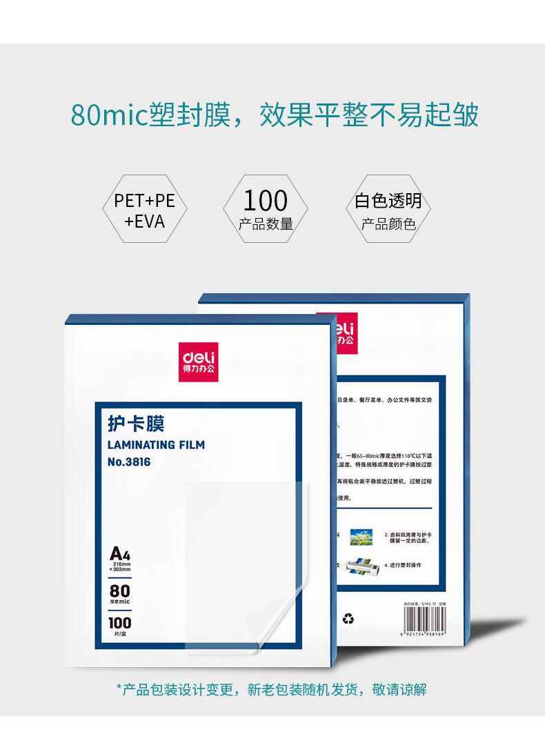 商品名称:得力 3816护卡膜(透明)(100片/包)*2包