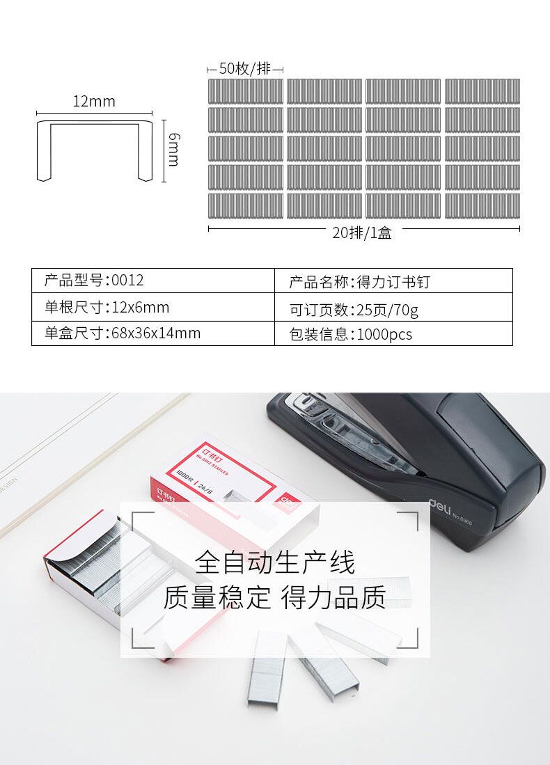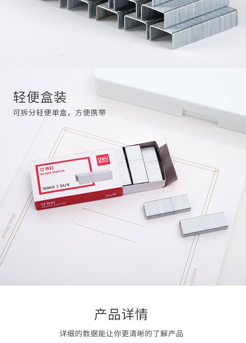 商品名称:得力 0012订书钉12#(1000枚/盒)*20盒