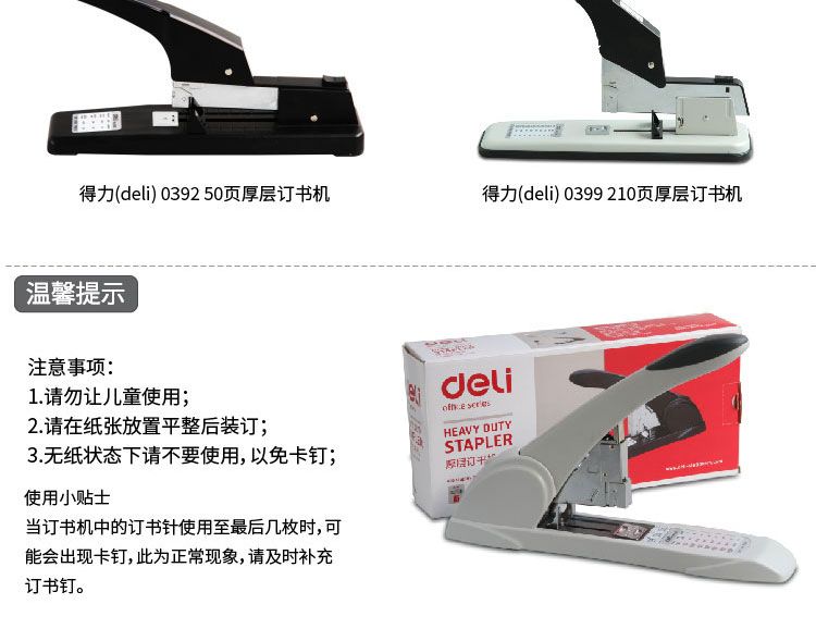 商品名称:得力 0395重型订书机(白)*1台