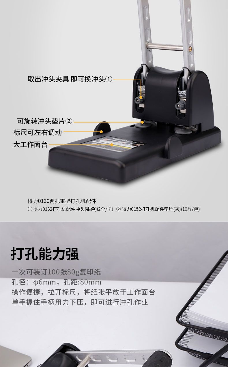 商品名称:得力 0130两孔重型打孔机(黑)*1台