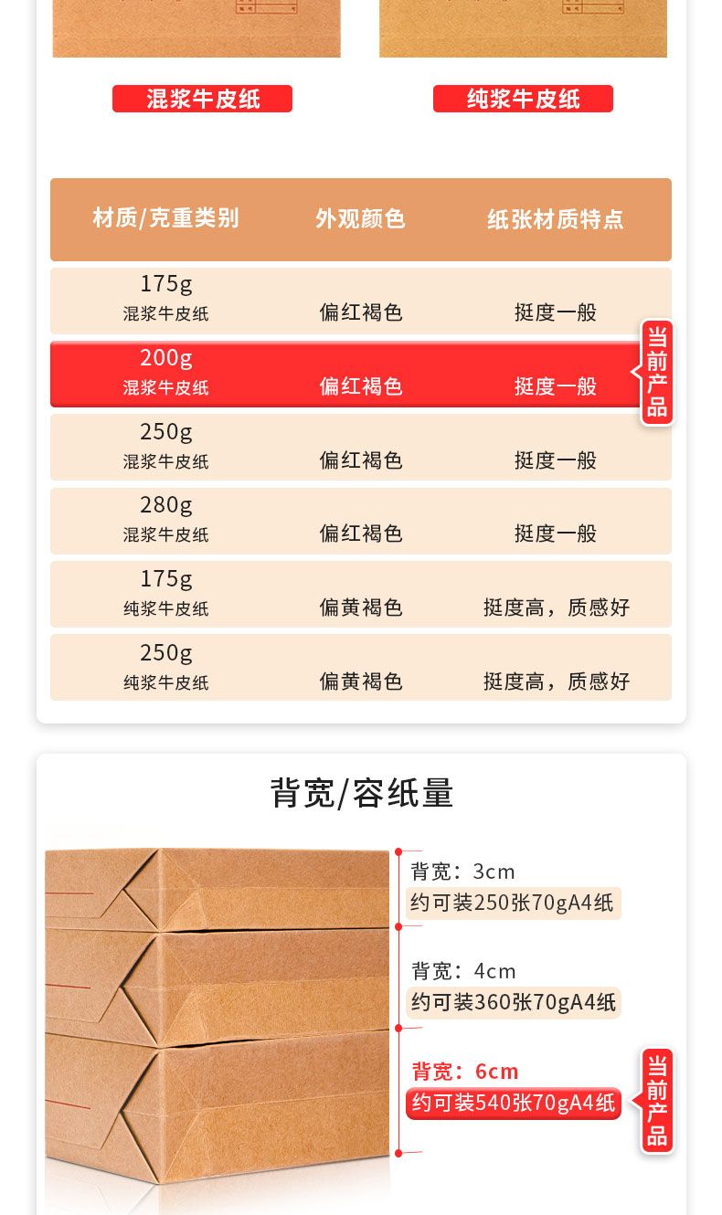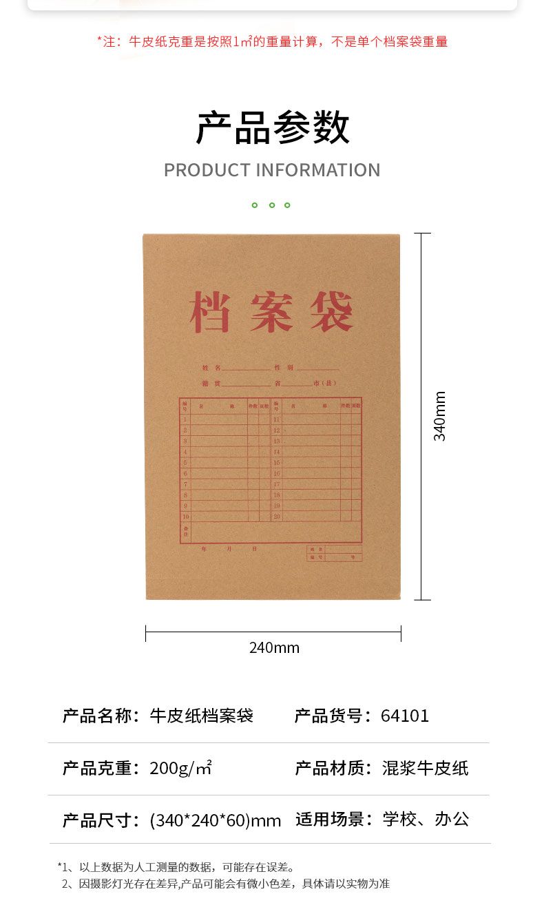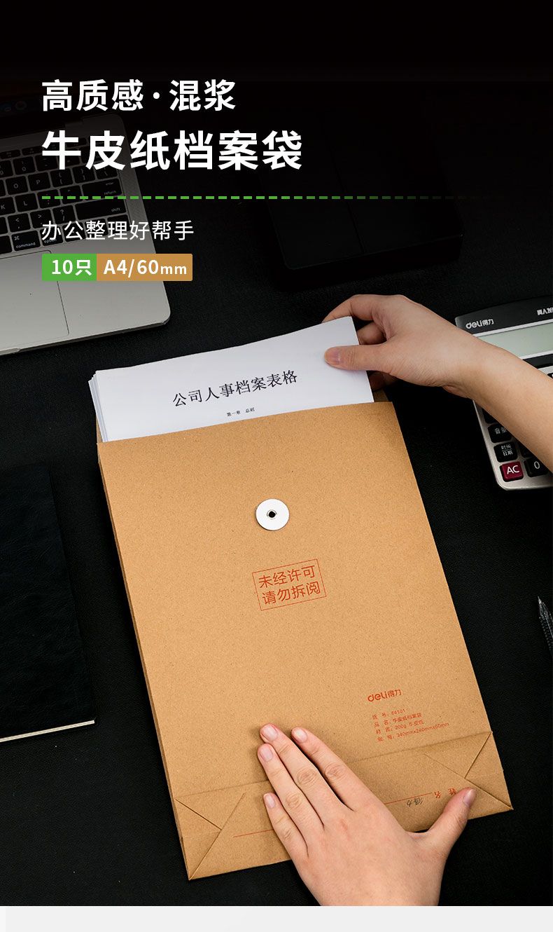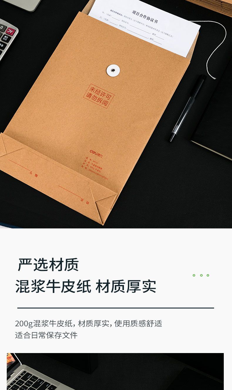 商品名称:得力 64101牛皮纸档案袋(200g-6cm)(黄)(10个/包)*6包