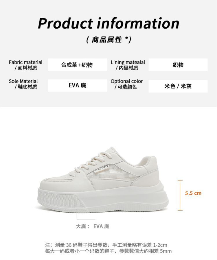 商品名称:小白鞋女春夏透气轻薄时尚板鞋厚底鞋舒适通勤鞋百搭运动休闲鞋 873175