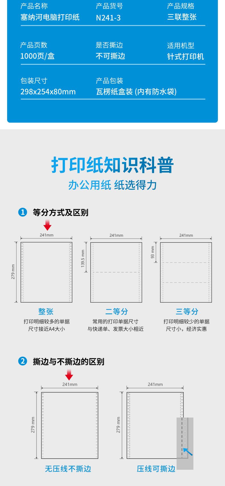 商品名称:得力 塞纳河N241-3电脑打印纸(白色不撕边)(1000页/盒)*1盒