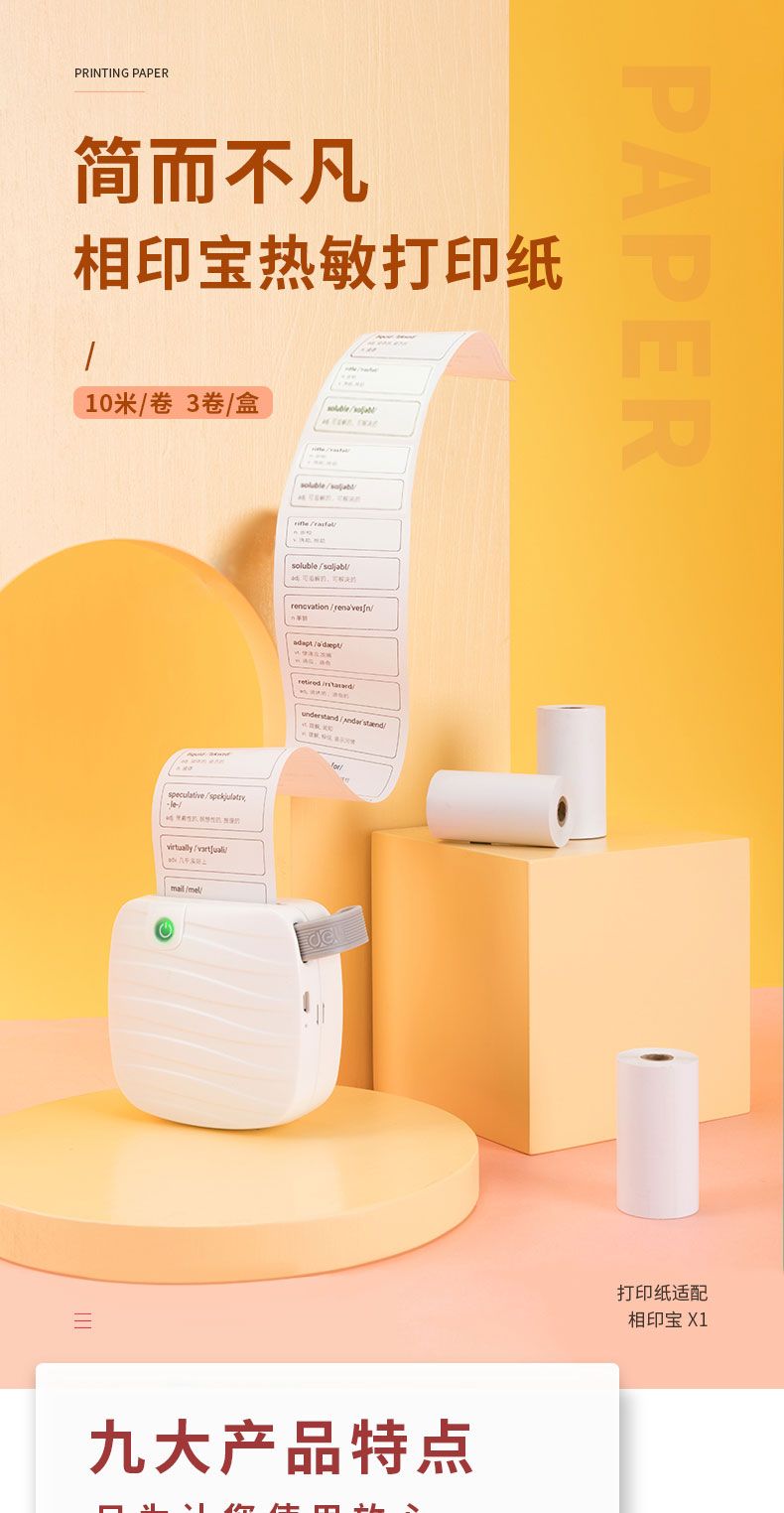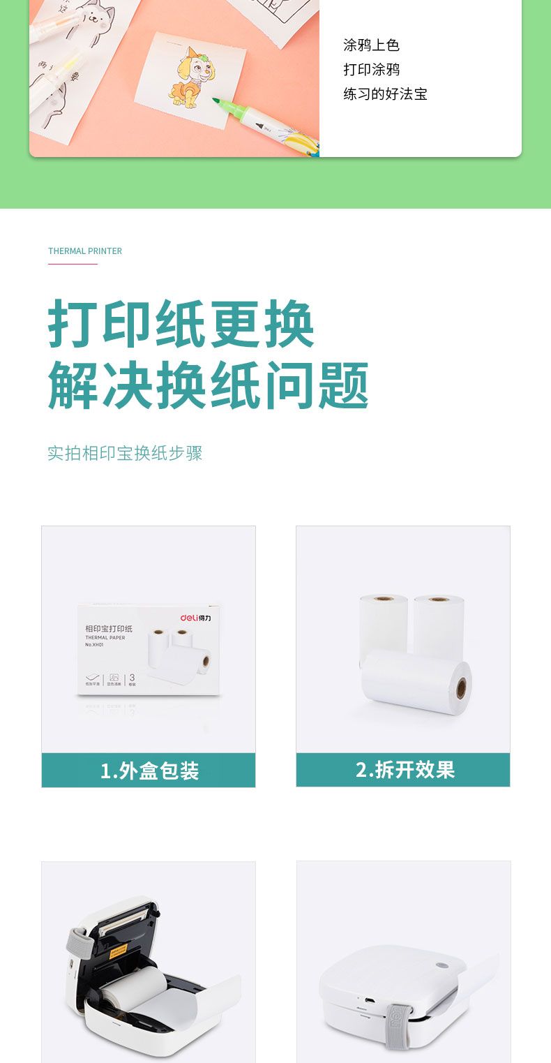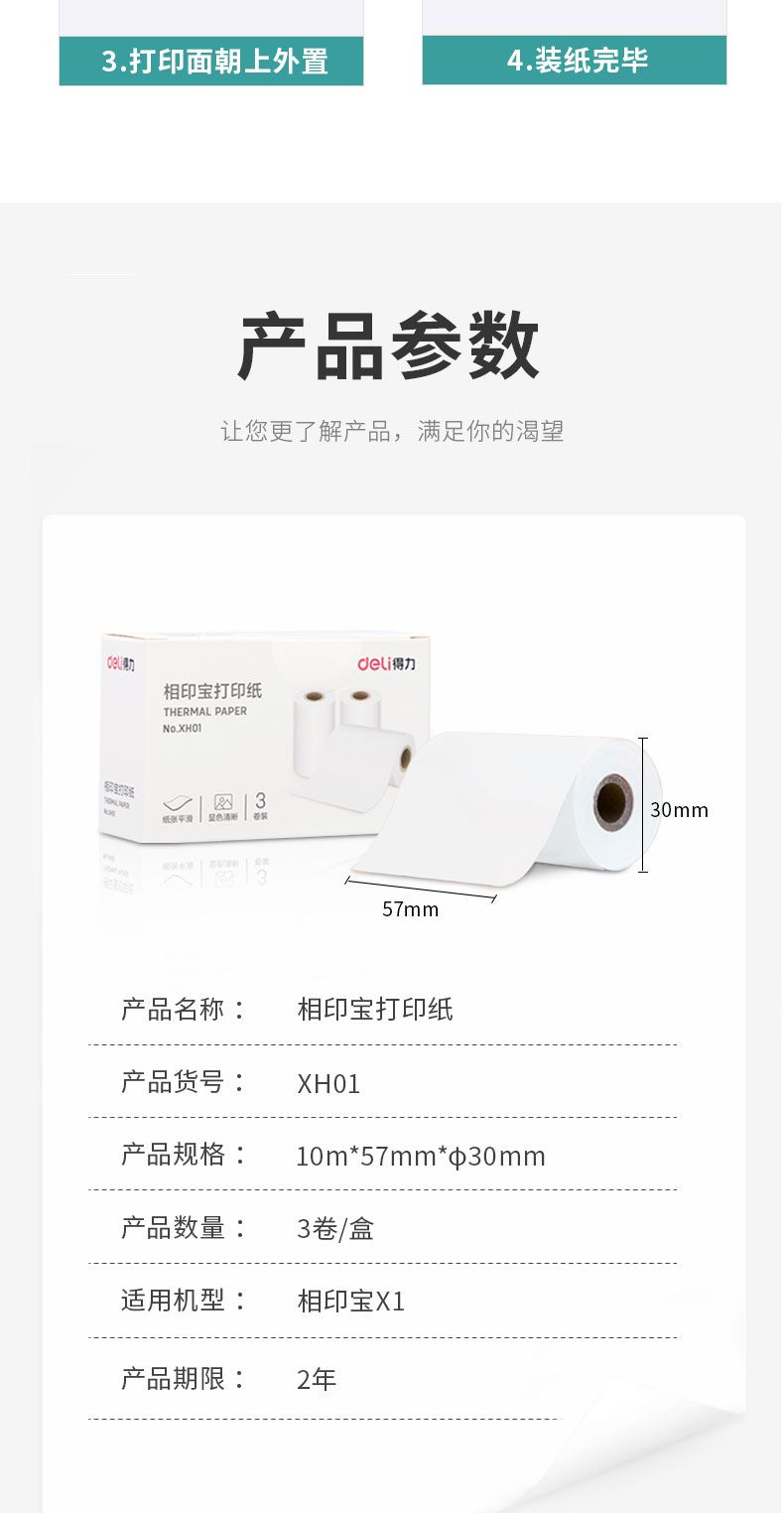 商品名称:得力 XH01相印宝打印纸两寸型10m/卷(白)(3卷/盒)*5盒