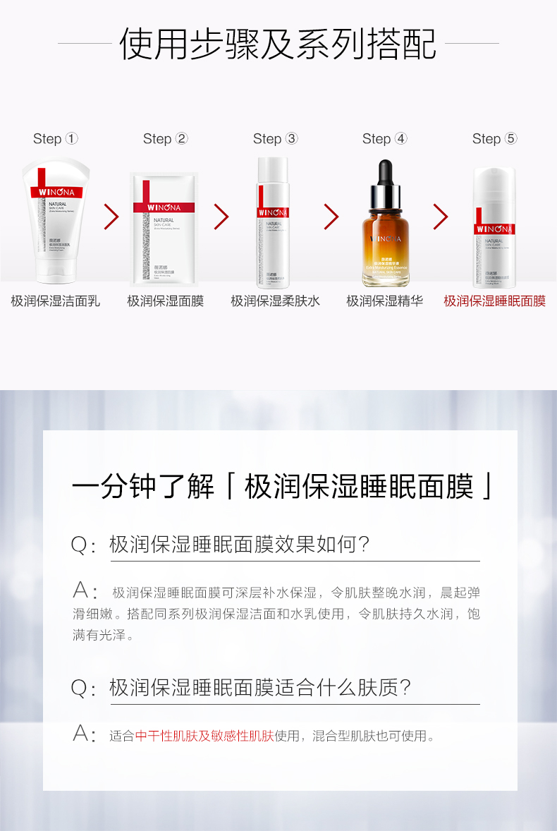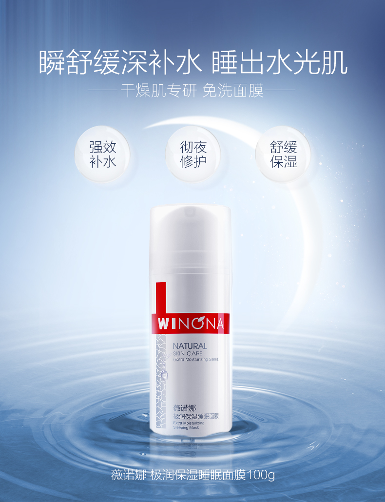 商品名称:Winqan/薇诺娜 极润保湿睡眠面膜 100g 免洗深层补水滋润敏感肌修护屏障