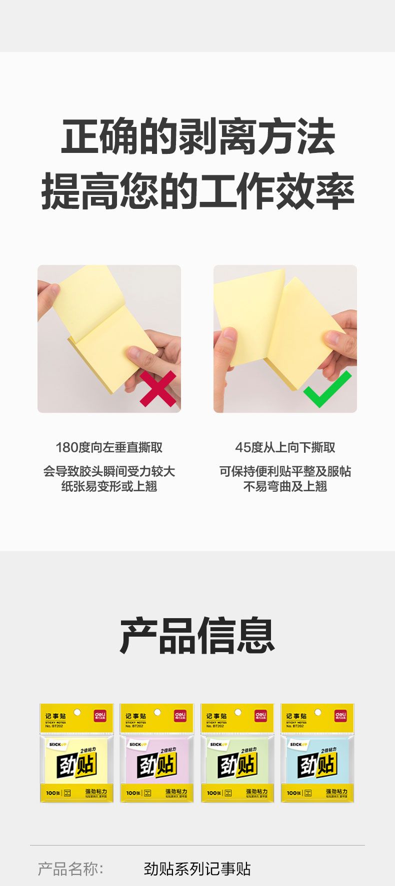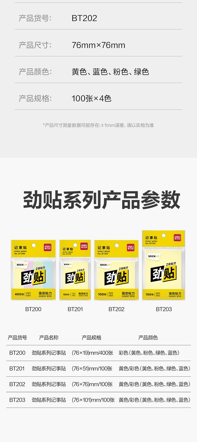 商品名称:得力 BT202劲贴记事贴76mm×76mm 100张(彩色)(本)*8本