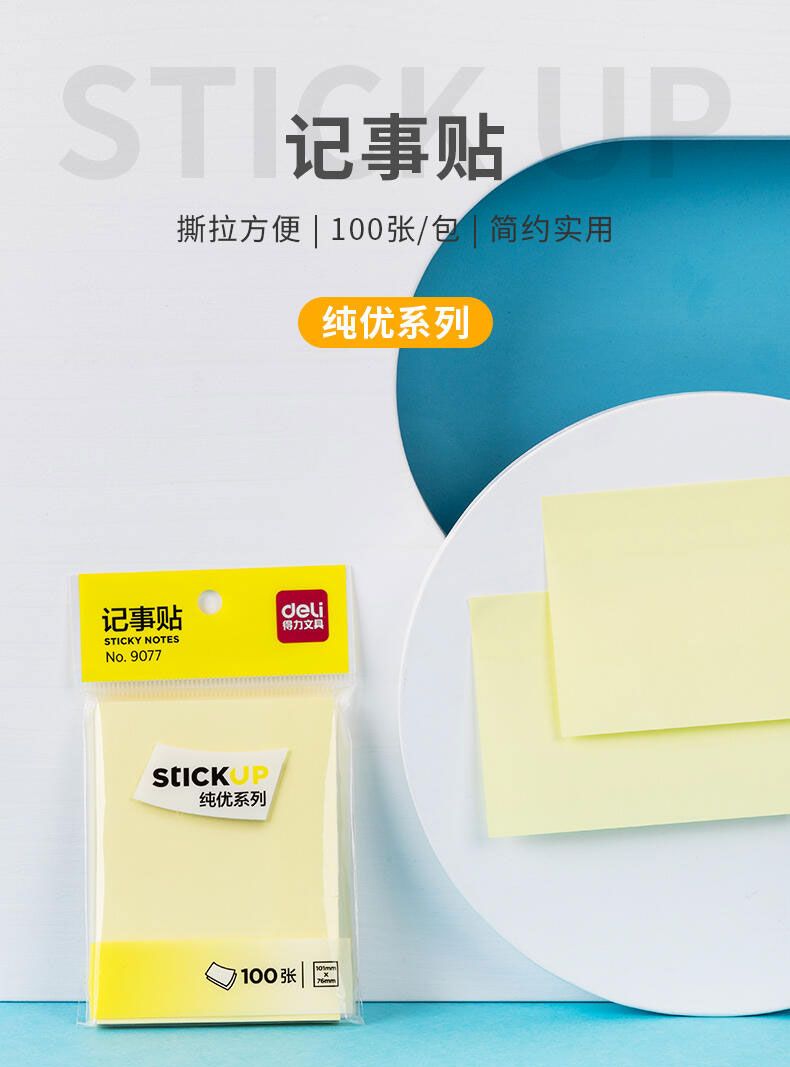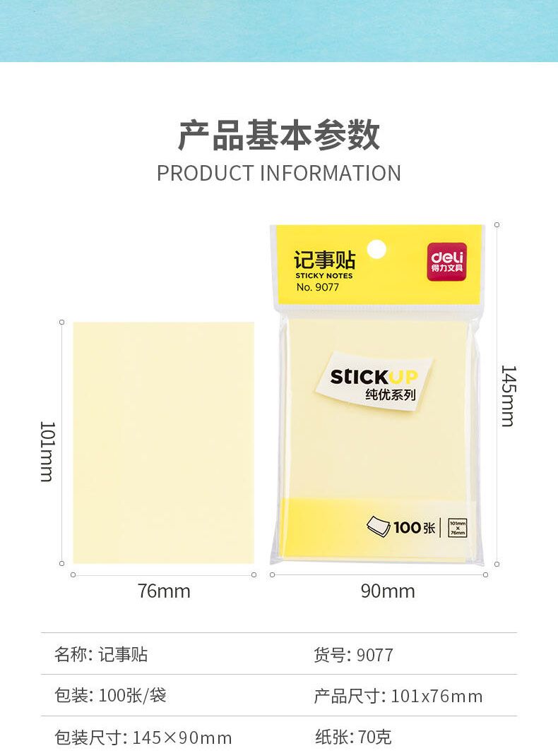 商品名称:得力 9077记事贴(黄色)76*101mm 100张*8包