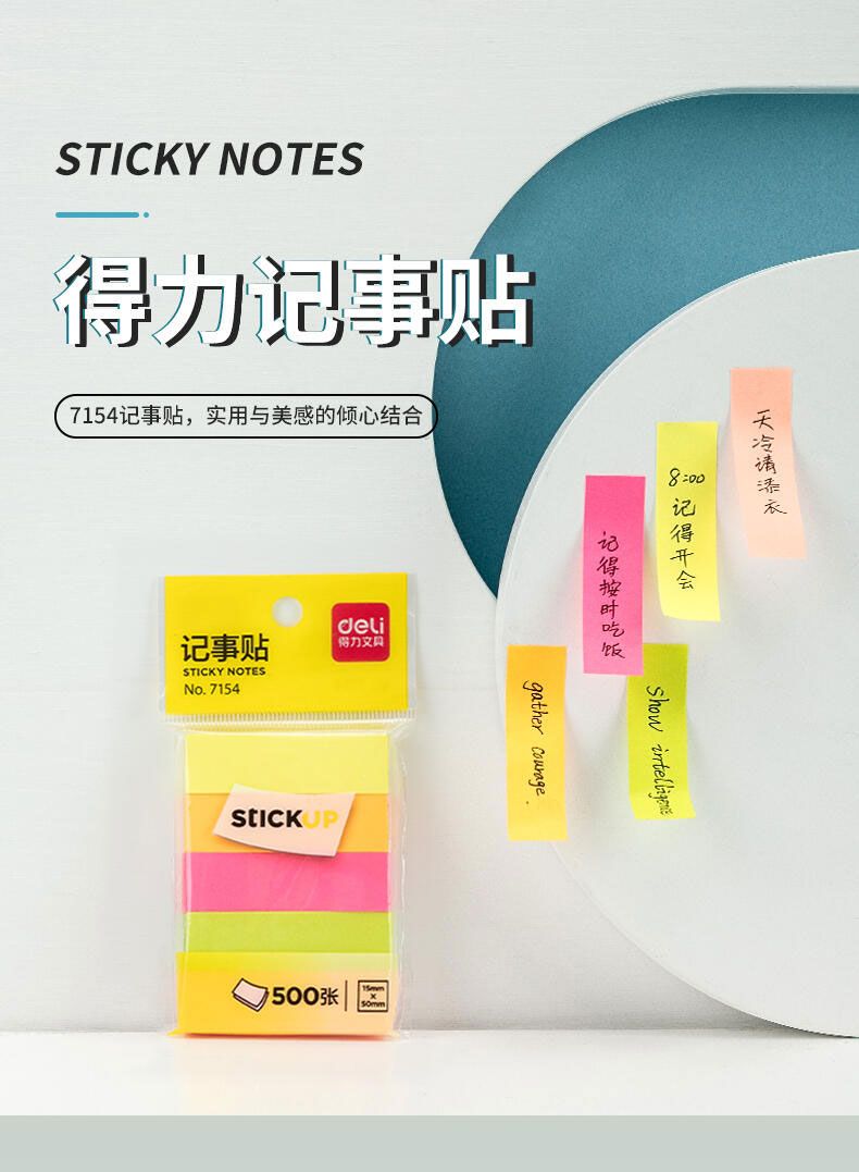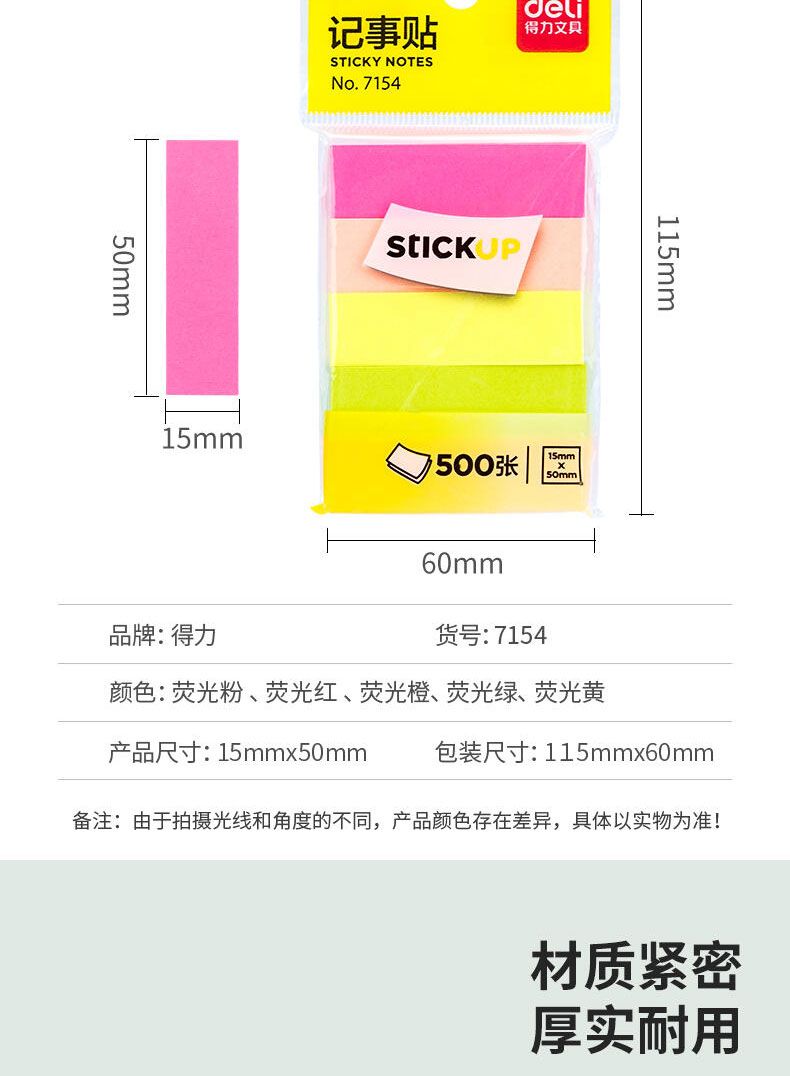 商品名称:得力 7154记事贴(混合装)50*15mm 400张*8包