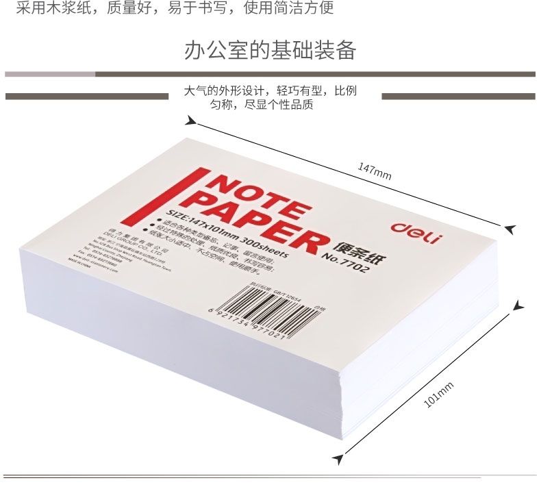 商品名称:得力 7702便条纸147*101(白)300张*5包