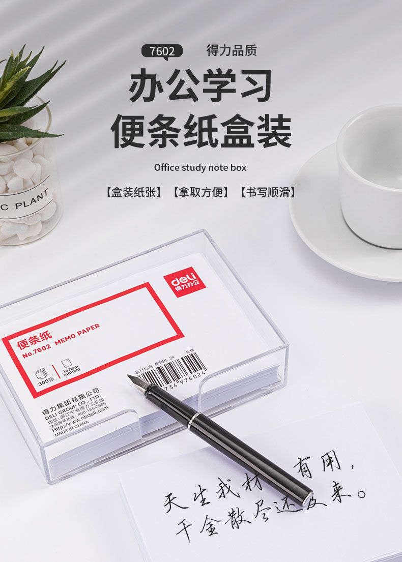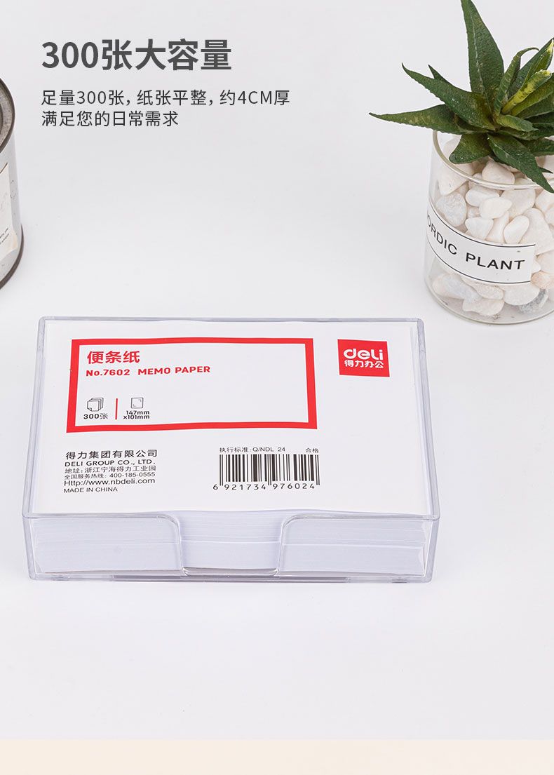 商品名称:得力 7602便条纸带盒155*101(白)300张*5盒