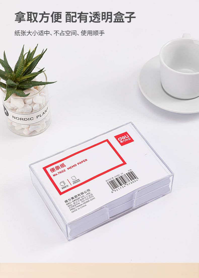 得力 7602便条纸带盒155*101(白)300张*5盒