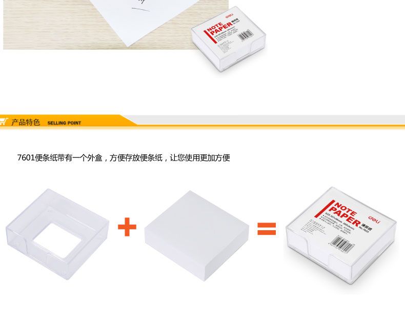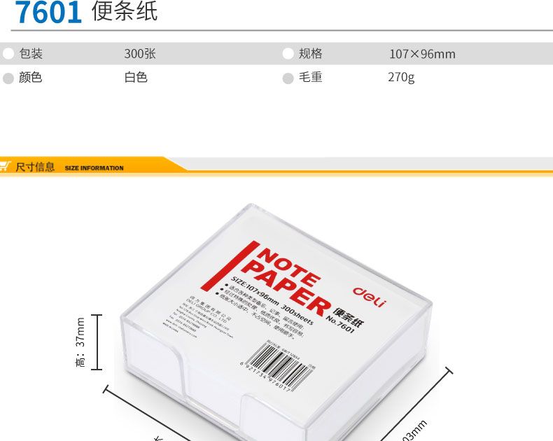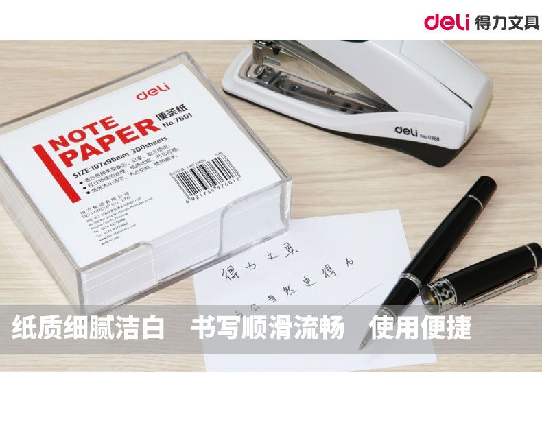商品名称:得力 7601便条纸带盒107*96(白)300张*5盒