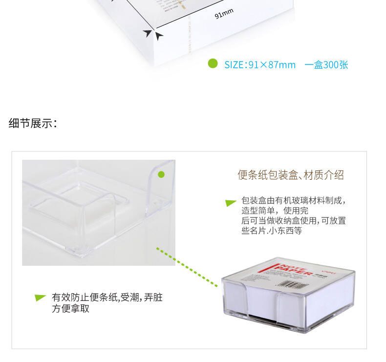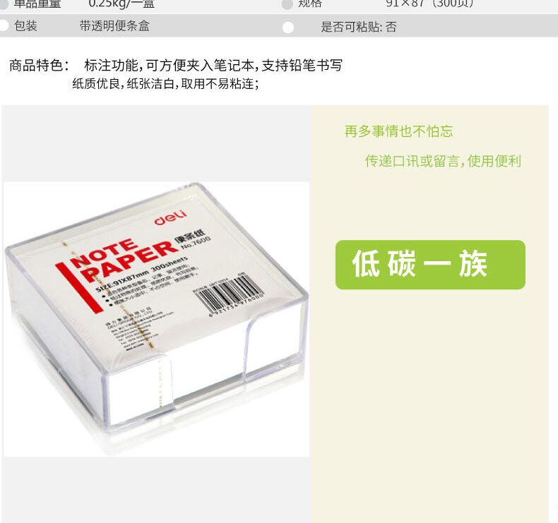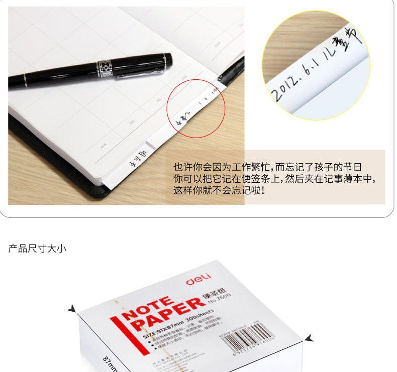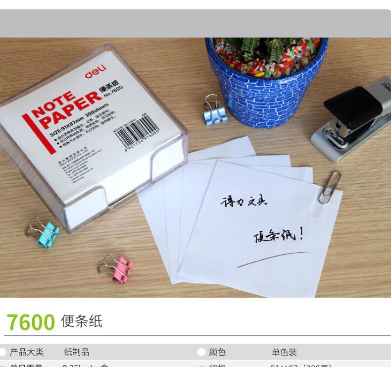 商品名称:得力 7600便条纸带盒91*87(白)300张*5盒