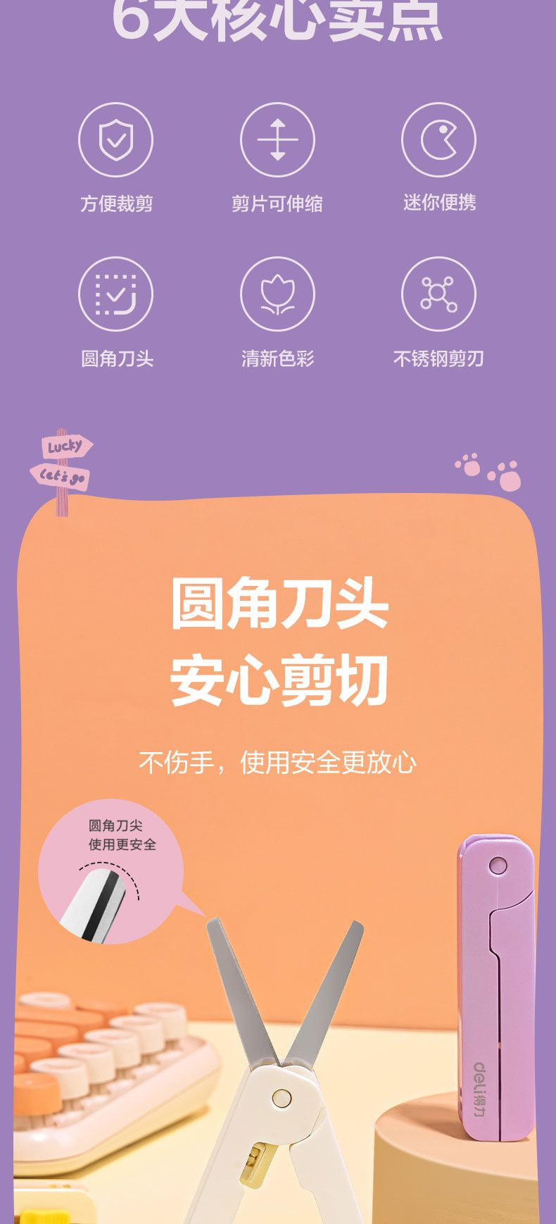 商品名称:得力 6072便携剪刀(混合装)*3卡