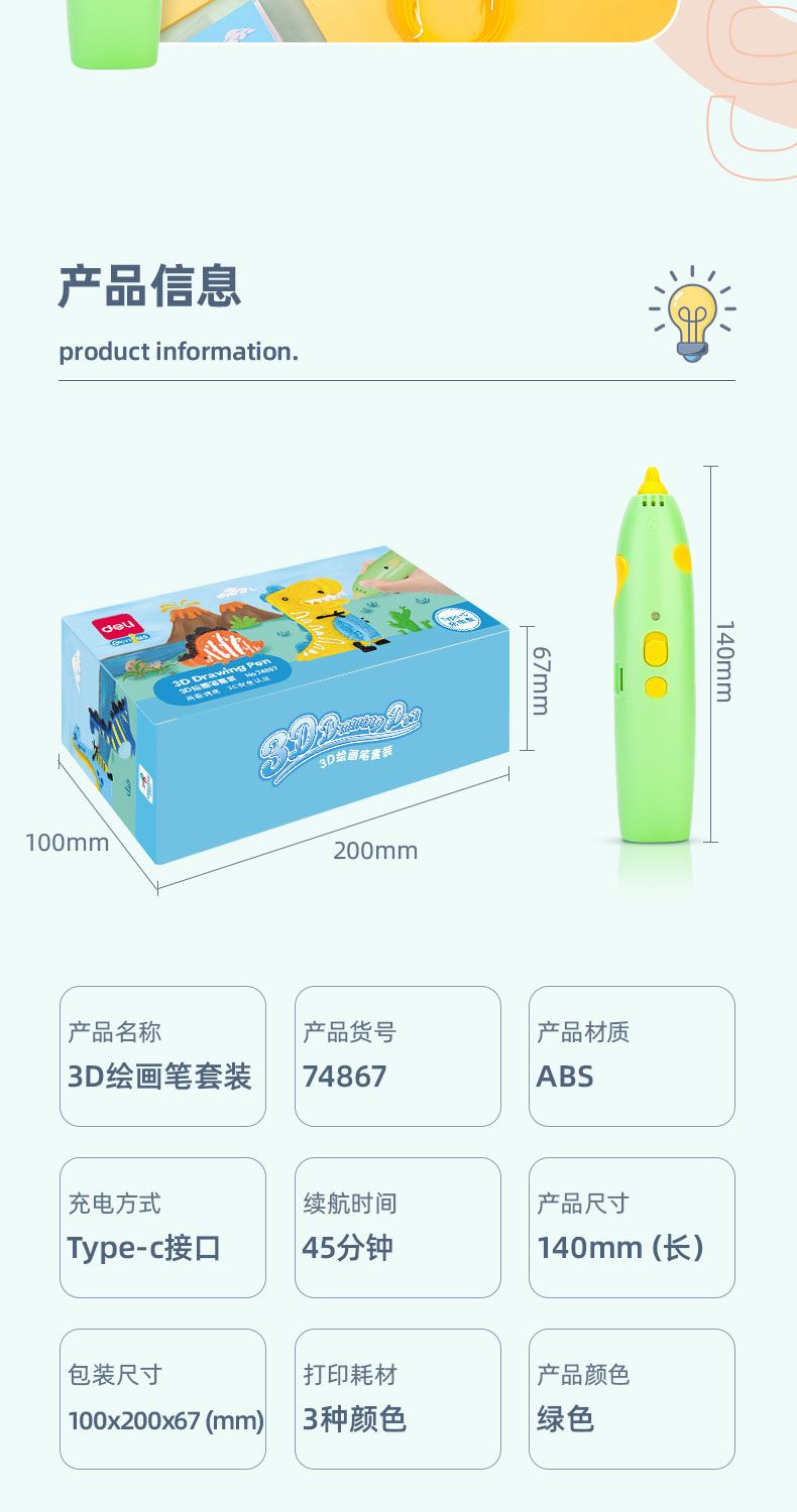 商品名称:得力 74867-3D绘画套装(绿色)*1盒