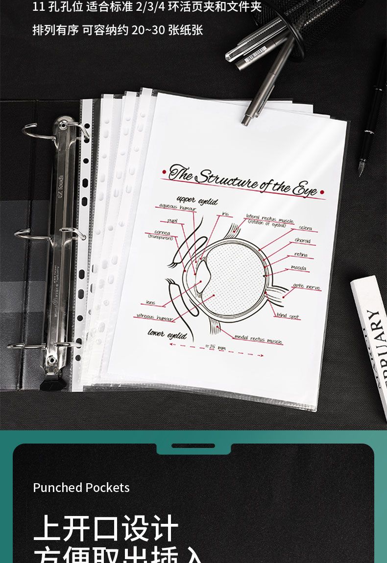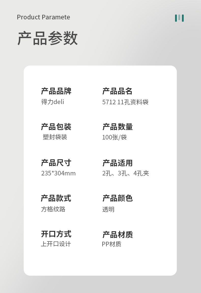 商品名称:得力 5712_11孔资料袋(透明)(100只/包)*2包