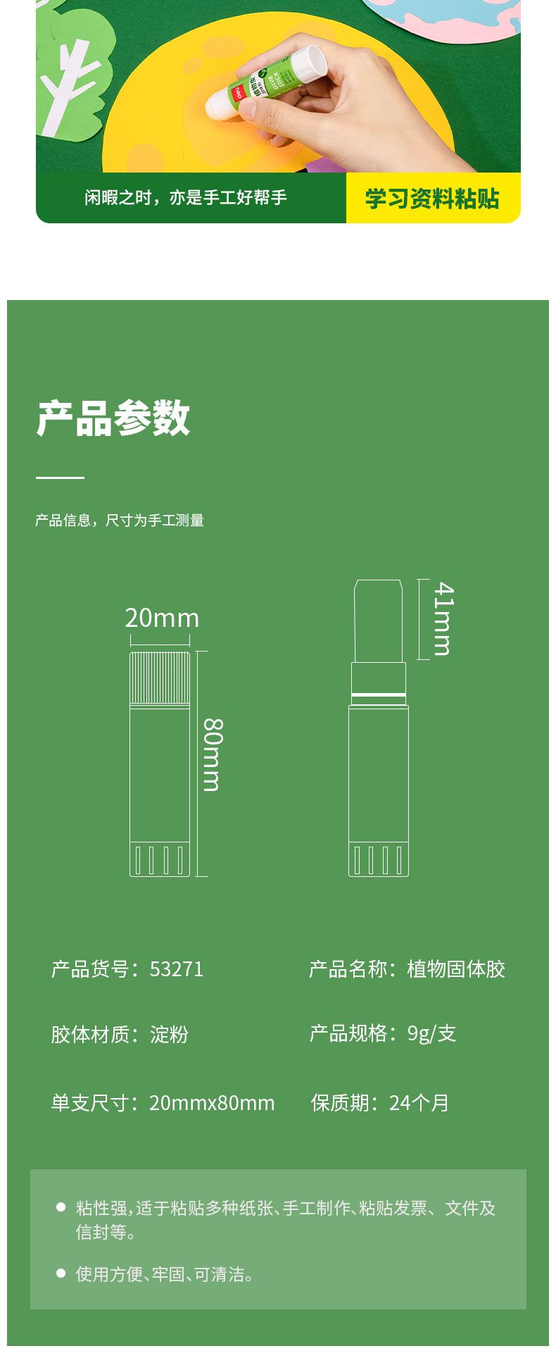 商品名称:得力 53271植物固体胶(白色)(9g/支)*24支