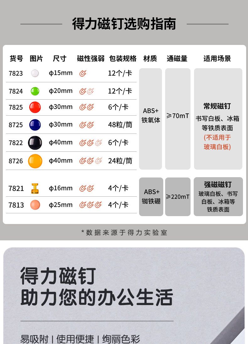 商品名称:得力 7824磁钉φ20mm(混合装)(12个/卡)*8卡