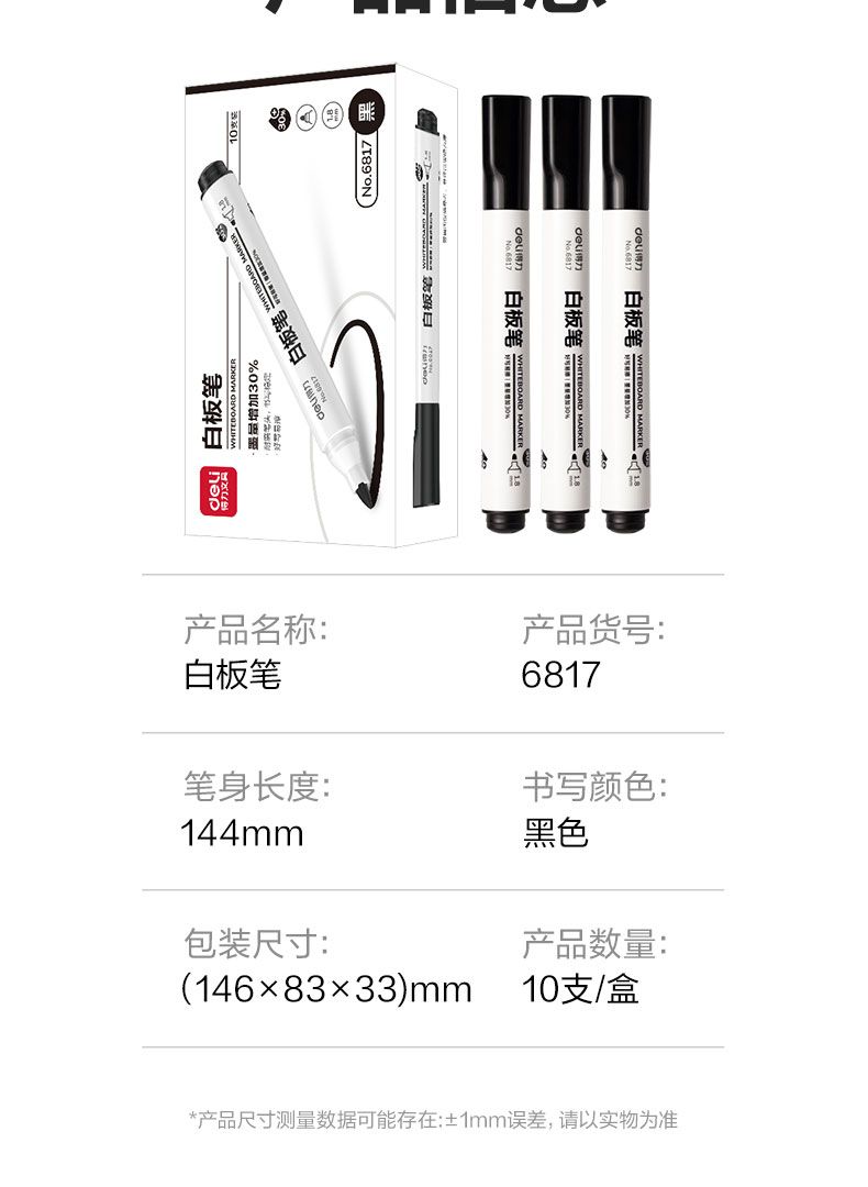 商品名称:得力 思达6817优逸白板笔(黑)*60支