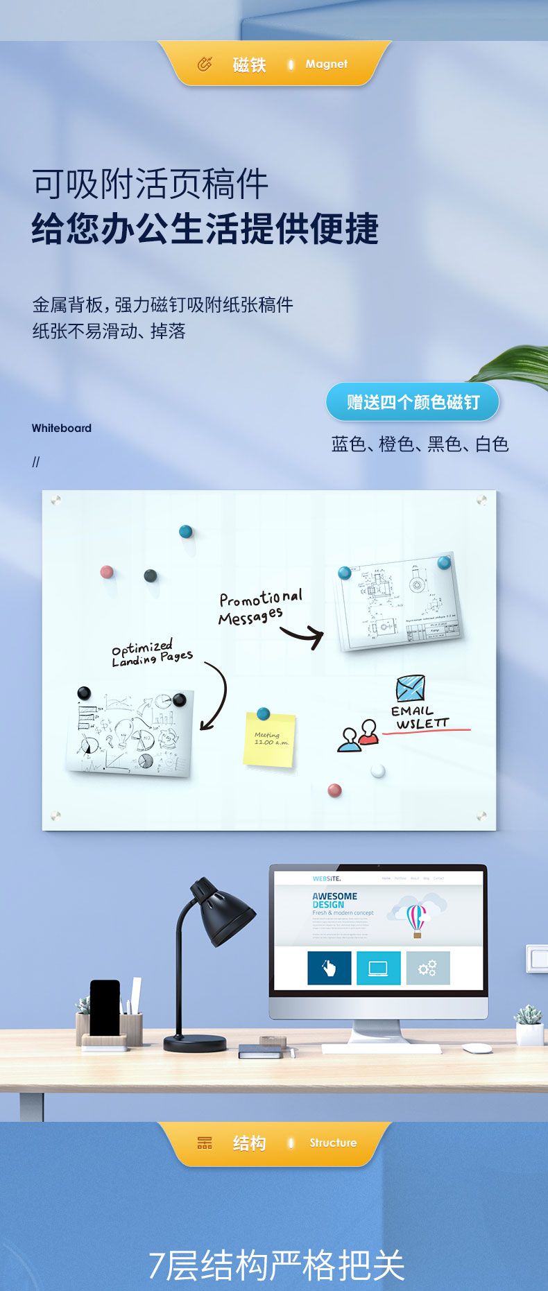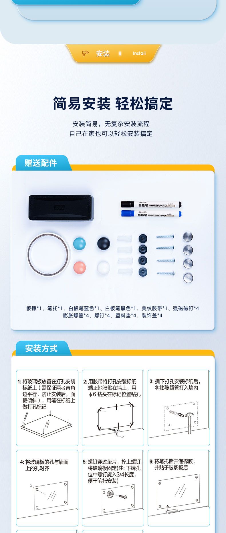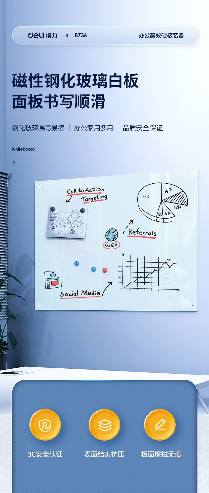 商品名称:得力 8736玻璃白板900*1200mm(白色)*1块