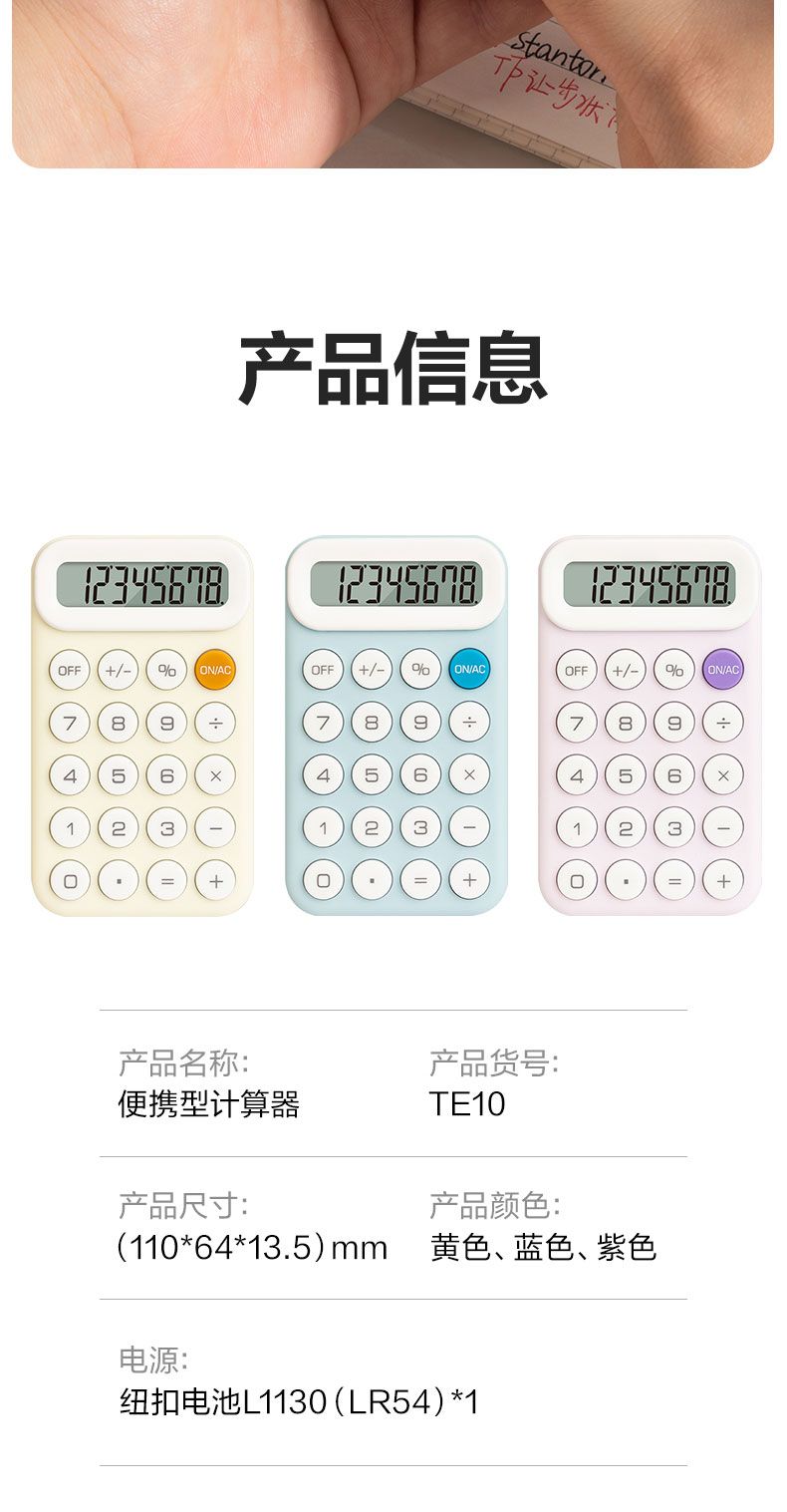商品名称:得力 TE10便携计算器(浅黄)*2台
