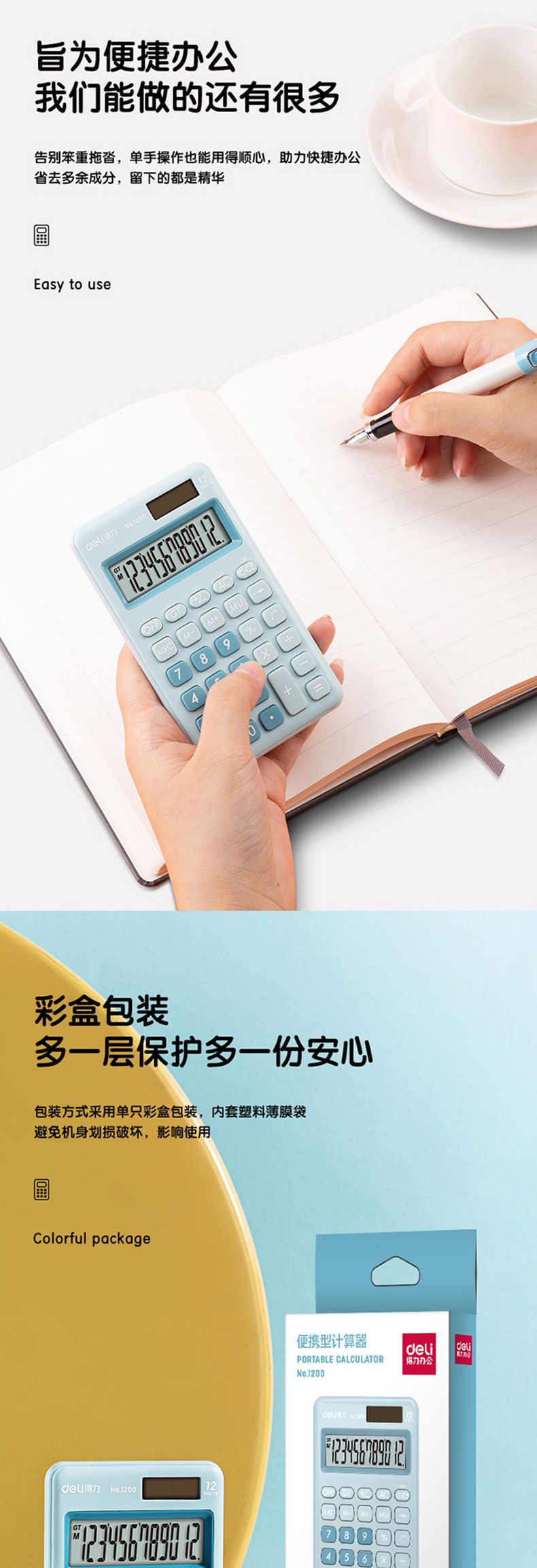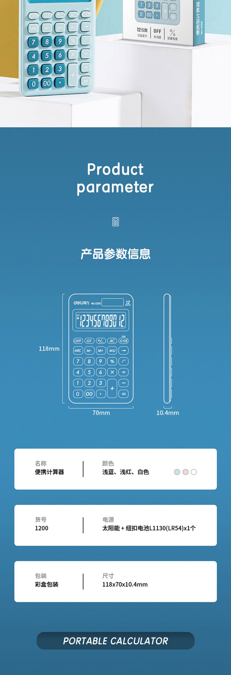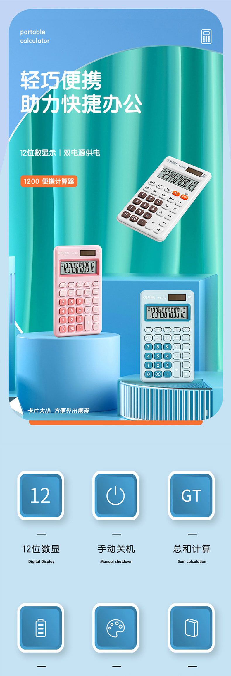商品名称:得力 1200便携型计算器(浅蓝)*2台