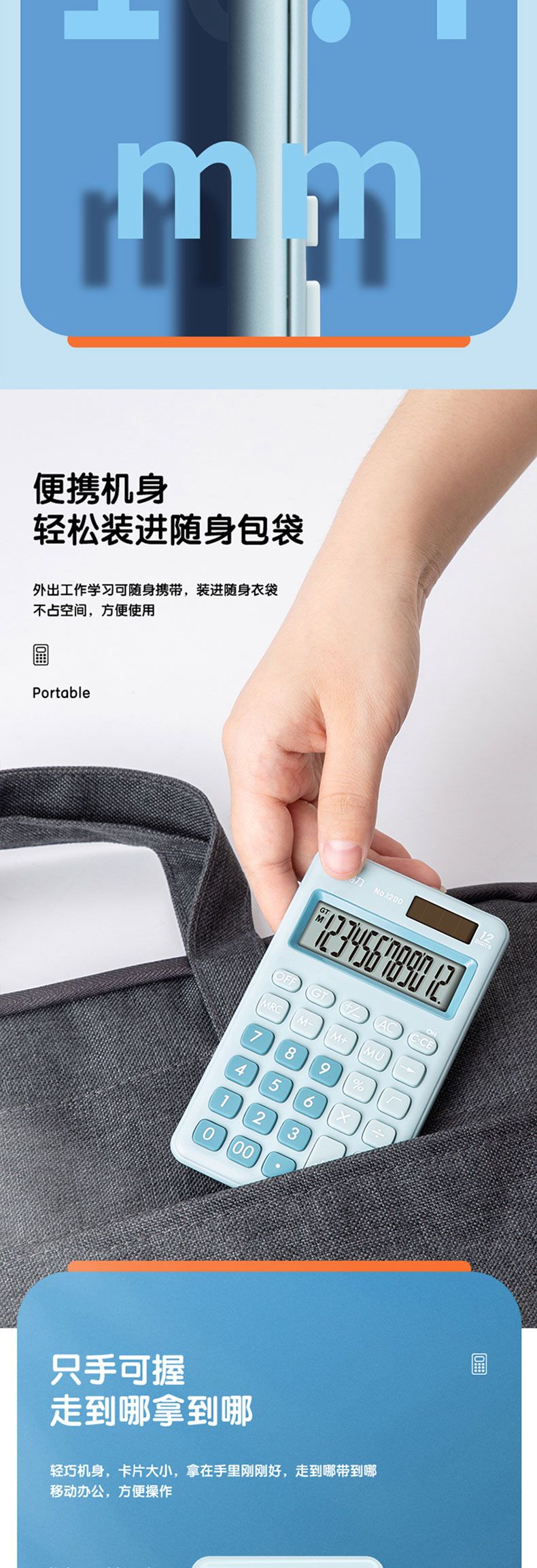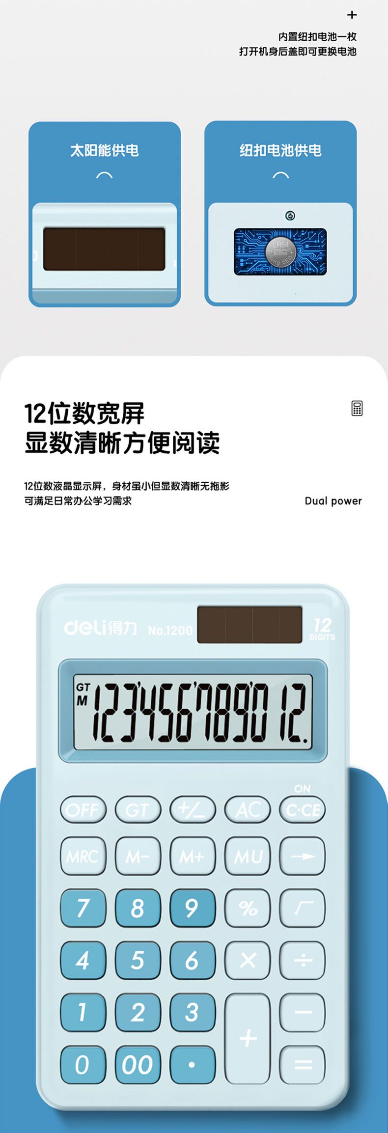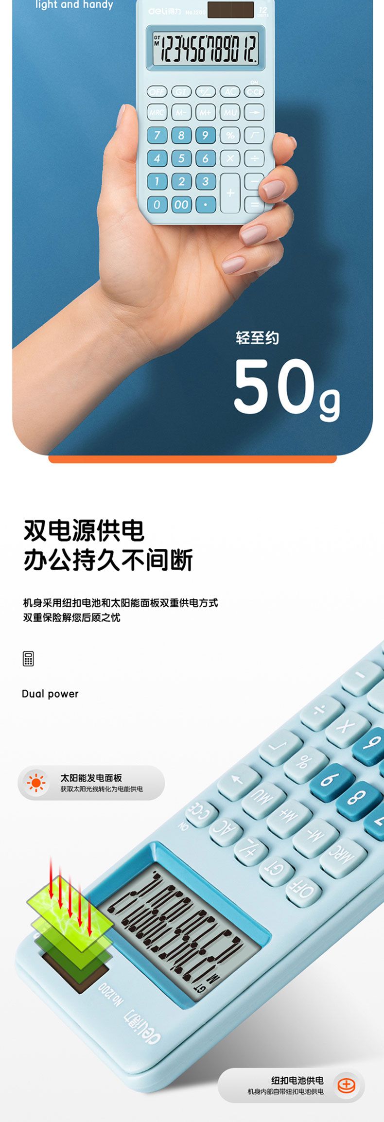 商品名称:得力 1200便携型计算器(浅蓝)*2台