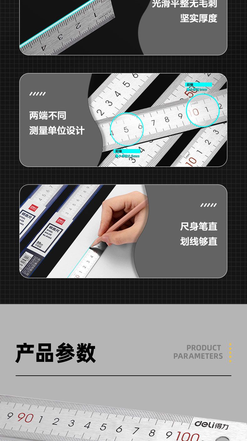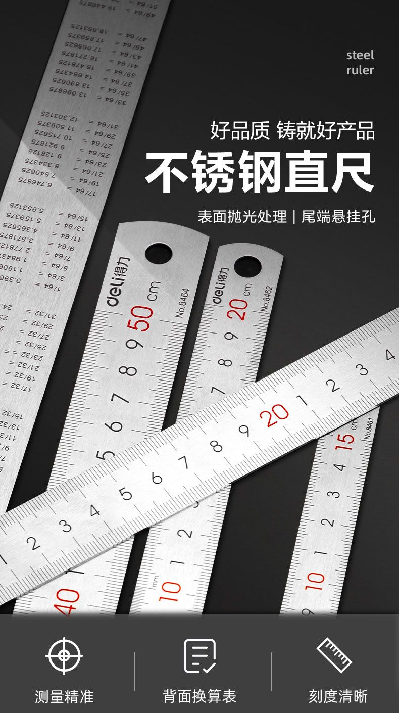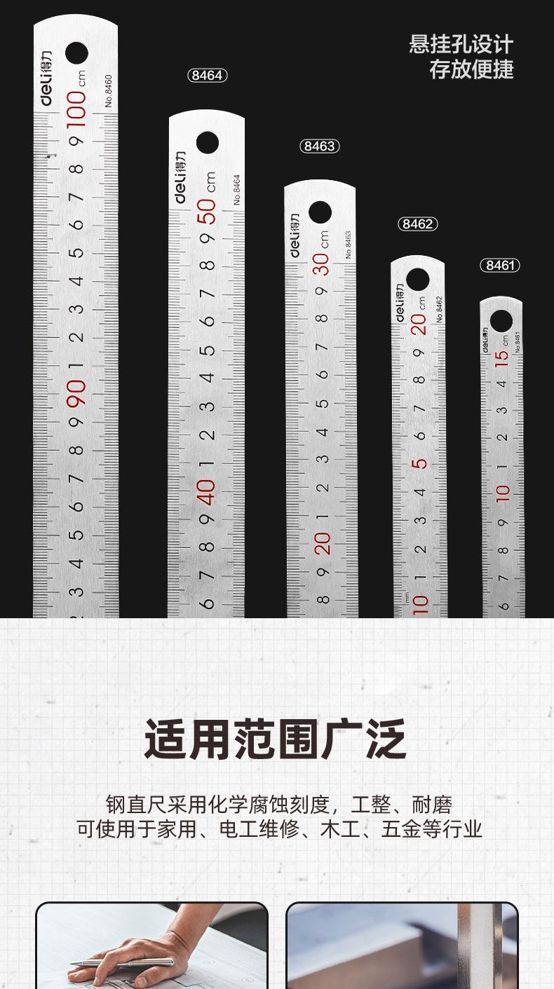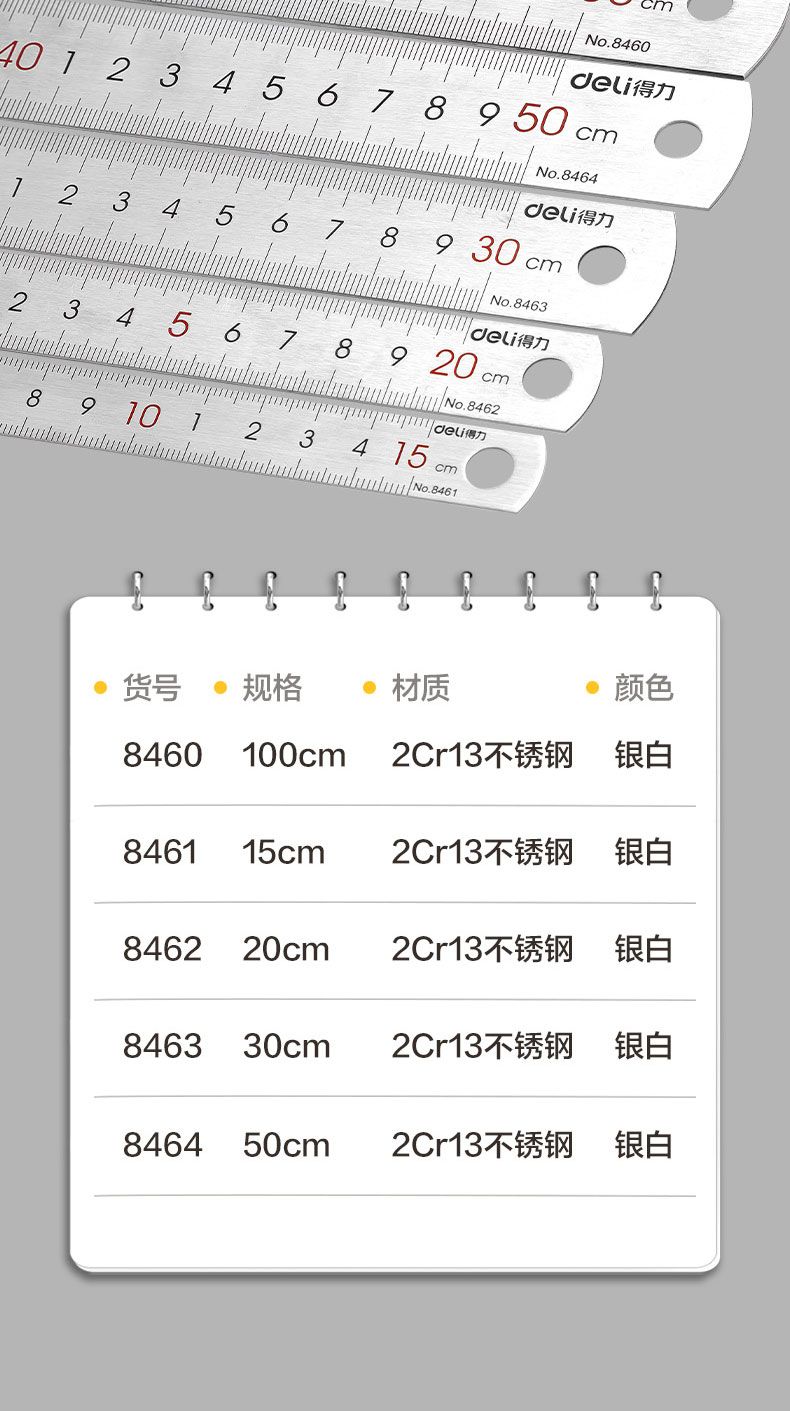 商品名称:得力 8460钢直尺1m(本色)*2只