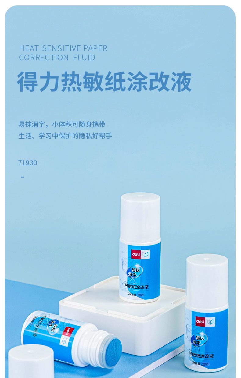 得力 71930热敏纸涂改液(混合装)(20ml/瓶)*8瓶