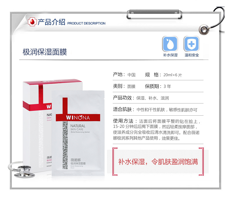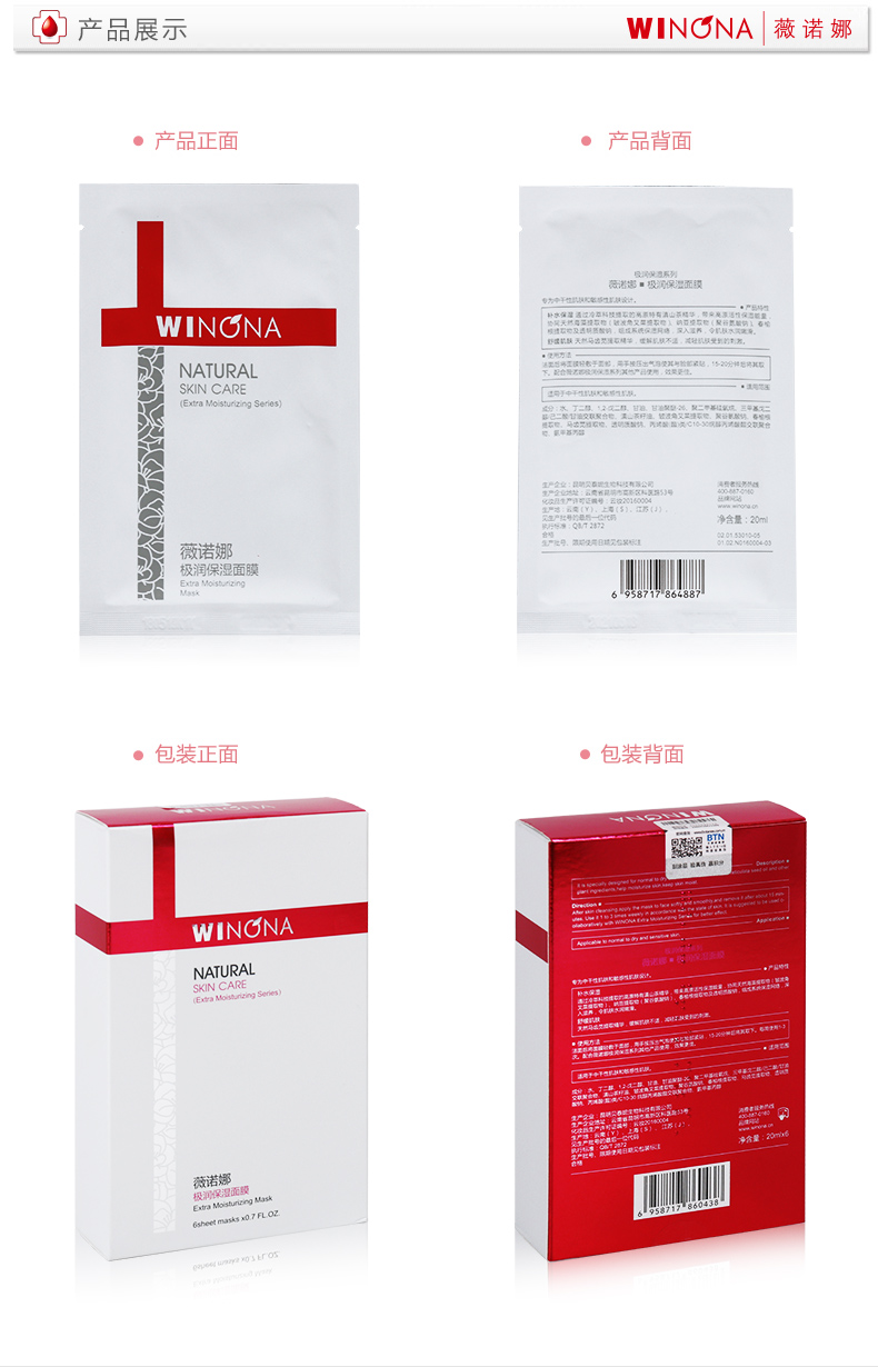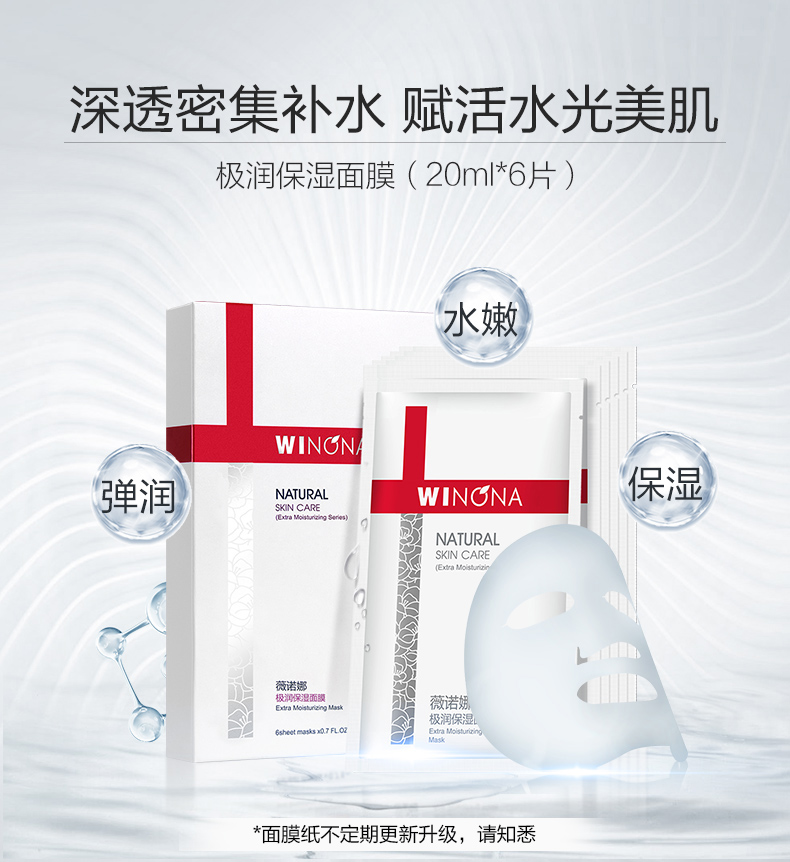 商品名称:Winqan/薇诺娜 极润保湿面膜 20ml 6片 补水保湿 舒缓肌肤