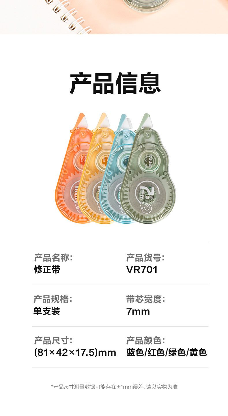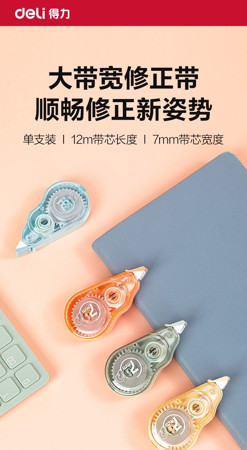 商品名称:得力 VR701大宽带修正带7mm*12m(混合装)*12个